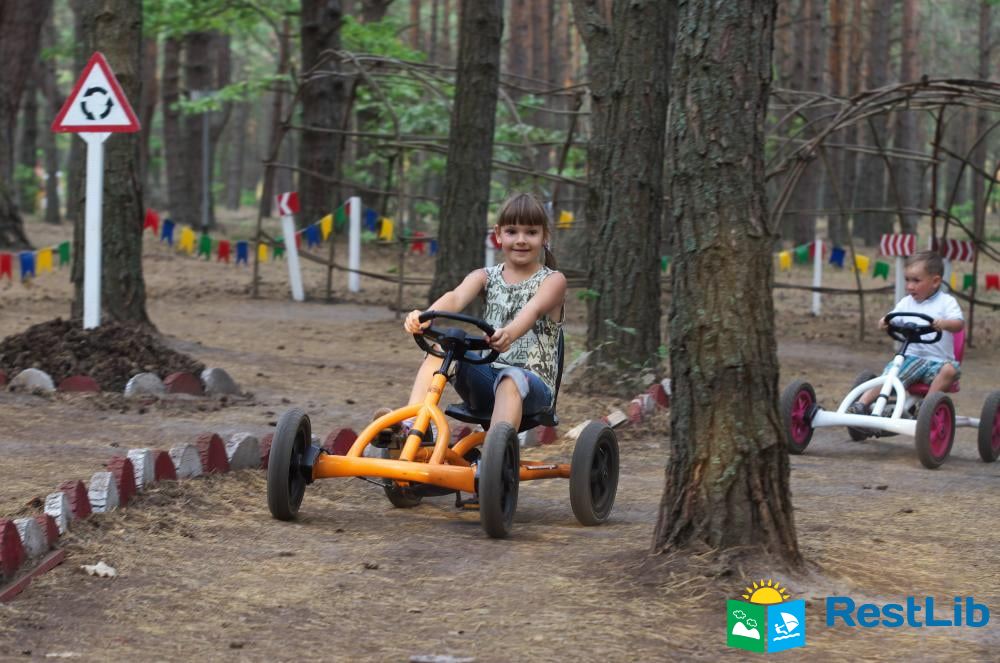 Картинг на веломобілях. Діти від 3-х до 13-ти років можуть покататись на веломобілях Berg по спеціальних доріжках з дорожніми знаками, поворотами і тунелями. Гарний спосіб спрямувати невичерпну енергію дітей у корисне русло.