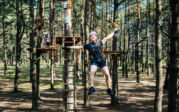 Мотузковий парк – це новий формат активного та екстремального відпочинку для дітей та дорослих віком від 3-х до 103-х років, вагою до 90 кг. Проходження маршрутів у мотузковому парку дарує море адреналіну і позитиву, є чудовим тренуванням усіх груп м’язів, витривалості, спритності, вміння володіти своїм тілом, як спосіб побороти страх висоти і розвинути впевненість у своїх силах. Різна складність перешкод робить мотузковий парк доступним для людей різного віку і фізичних можливостей.
