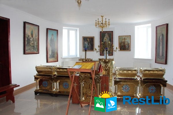 Розташований він в монастирському корпусі на першому поверсі. В цьому невеличкому храмі проводяться хрещення, панахиди, соборування, молебні. Іконостасу поки що немає. В храмі за аналоєм знаходяться чотири гробниці з мощами святих Києво-Печерської лаври та інших угодників Божих. Щодня братія монастиря читає тут вечірні молитви. Перед входом у сам храм стоять особливі стільці: високі та схожі на ті, які були колись в царському палаці. Це стасидії. Вони мають три положення: в першому монах може, спершись ліктями, стояти, в другому – трошки присісти, а в третьому сісти, коли вже немає сил стояти через довготривалу службу. Коридори корпусу окрашають ікони: сучасні і старовинні. Все це подарунки.