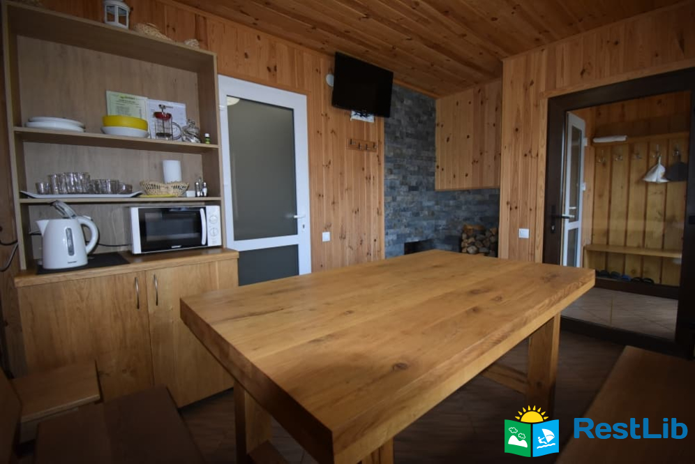 У вартість входить : 4 полотенця, 4 простині , 1 віник . Місце для відпочинку (великий стіл, лавки, телевізор, чайний сервіз, мікрохвильова піч), санвузол (душ , туалет, умивальник)