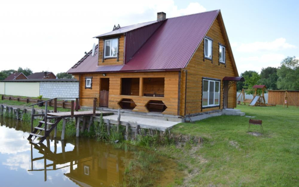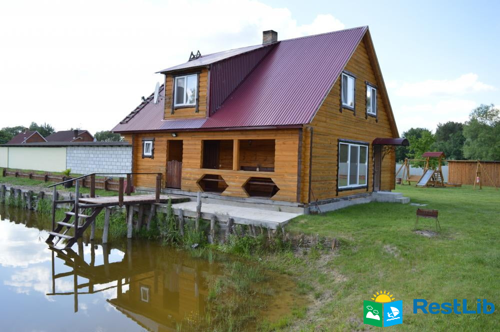 На 1-му поверсі котеджу : прихожа, кухня, сауна, столова зі столом, телевізор, музичний центр, шкіряне крісло, санвузол, душ (з холодною бочкою), тереса з виходом на місток ставка.
