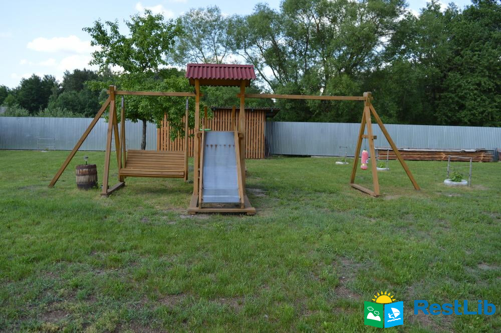 - вихід до лісу (біля лісу столики з мангалами, три гойдалки та ще один ставок з містком)