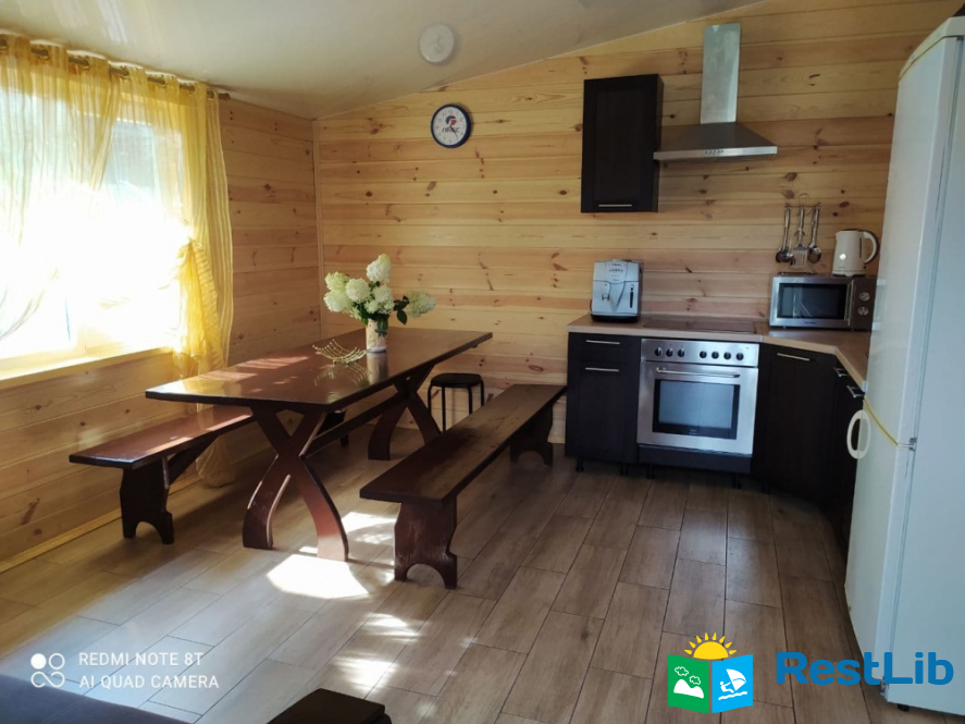 В котеджі є все необхідне для комфортного відпочинку: сауна, камін на дровах, кондиціонер, Wi-Fi інтернет, супутникове TV, пральна машина, а також повністю укомплектована кухня (ел. плита, духовка, мікрохвильова піч, холодильник, кавовий апарат, ел. чайник, посуд).