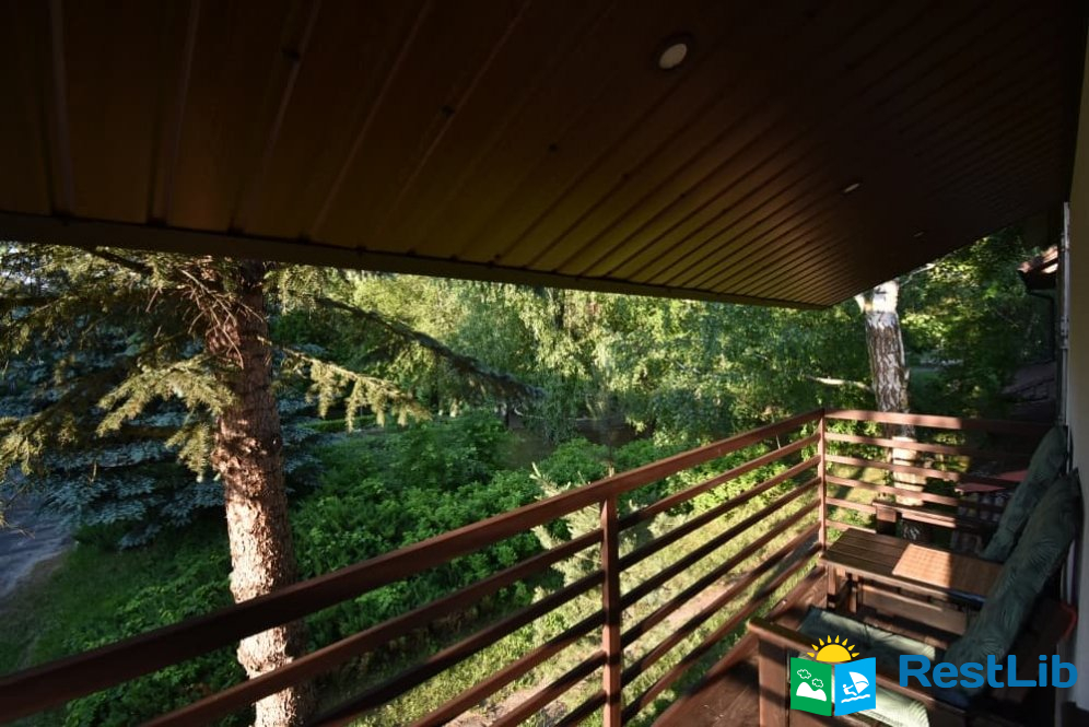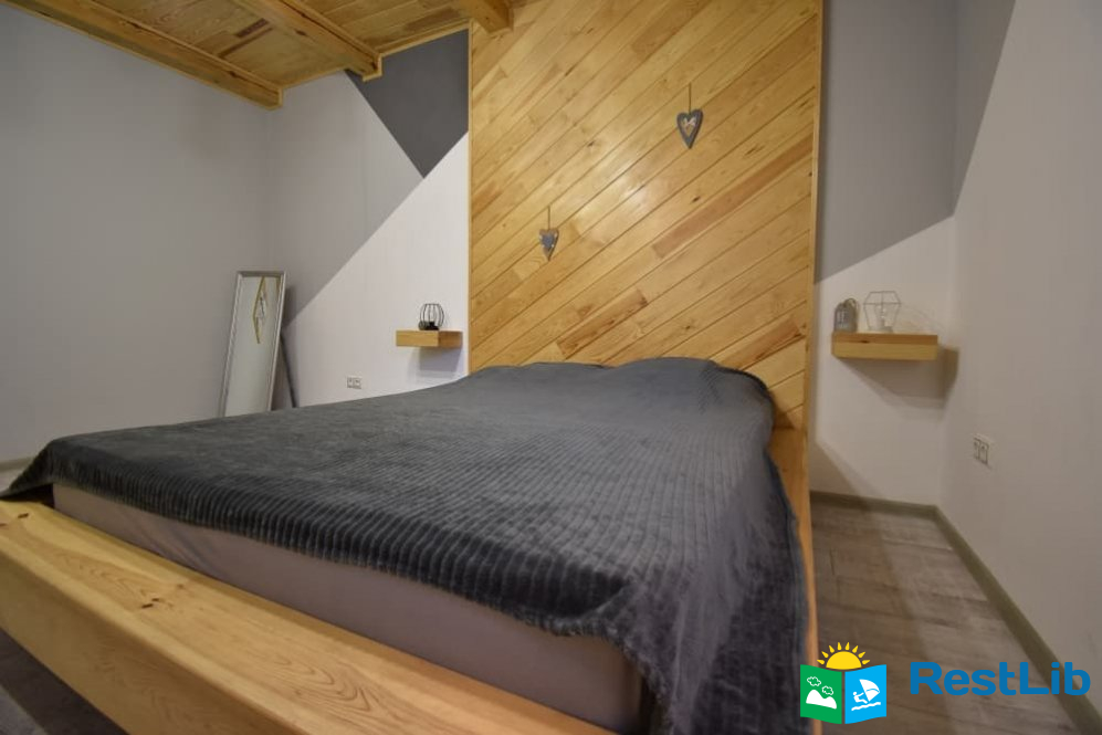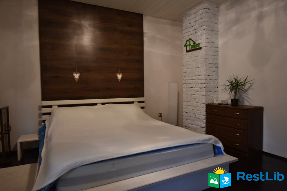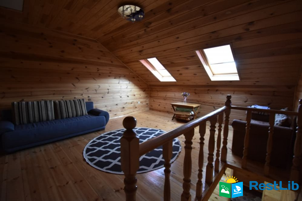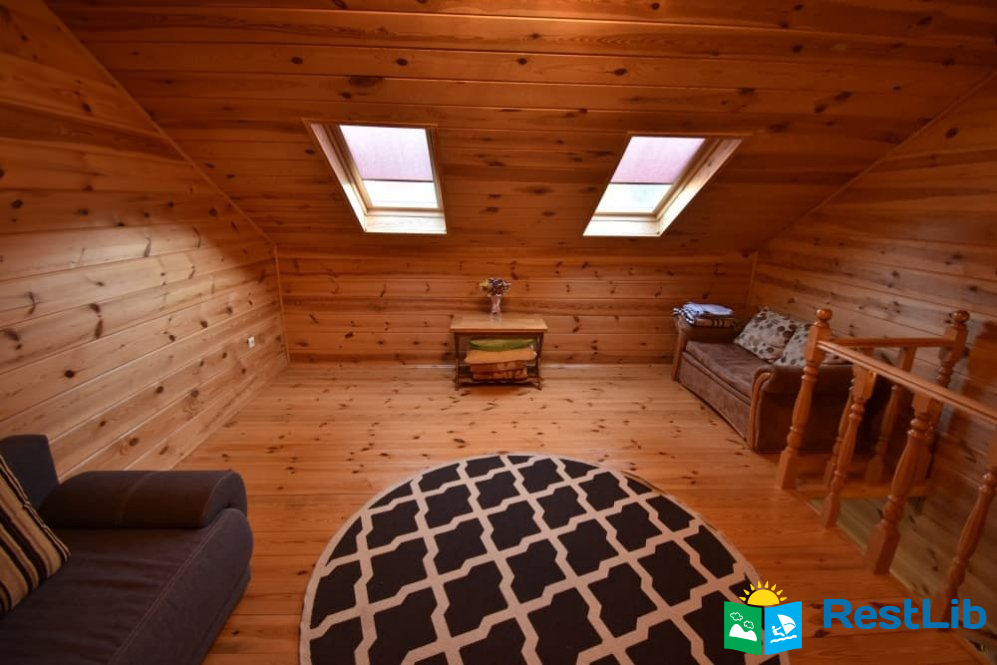 На другому поверсі знаходиться друга спальня з двохспальним ліжком, балкон якої виходять на зелений масив санаторію "Лісова Пісня", хол з мансардними вікнами де ви можете помилуватись зоряним небом,а також санвузол з душем.