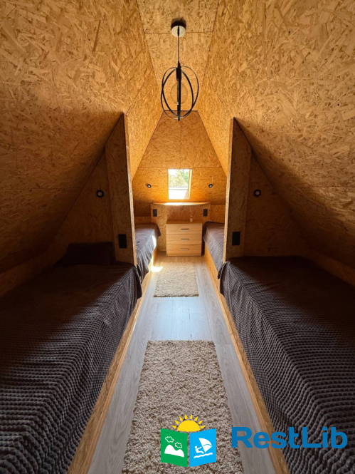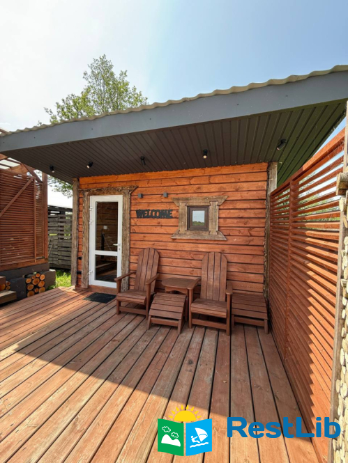 Затишний дерев’яний будинок, розрахований на 4–6 гостей — чудовий вибір для спокійного відпочинку серед природи.