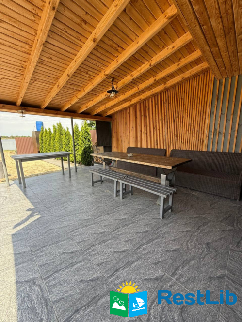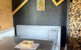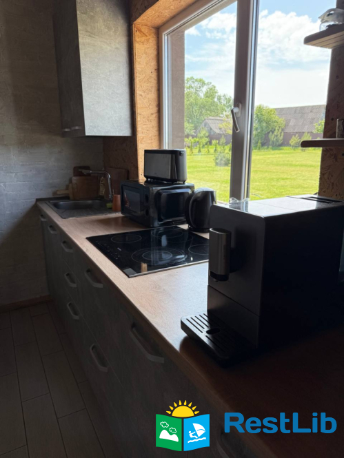 У будинку: простора тераса для відпочинку, кухня з усією необхідною технікою: електроплита, холодильник, кавова машина, тостер, зручності всередині будинку (гаряча вода, санвузол), швидкісний Wi-Fi.