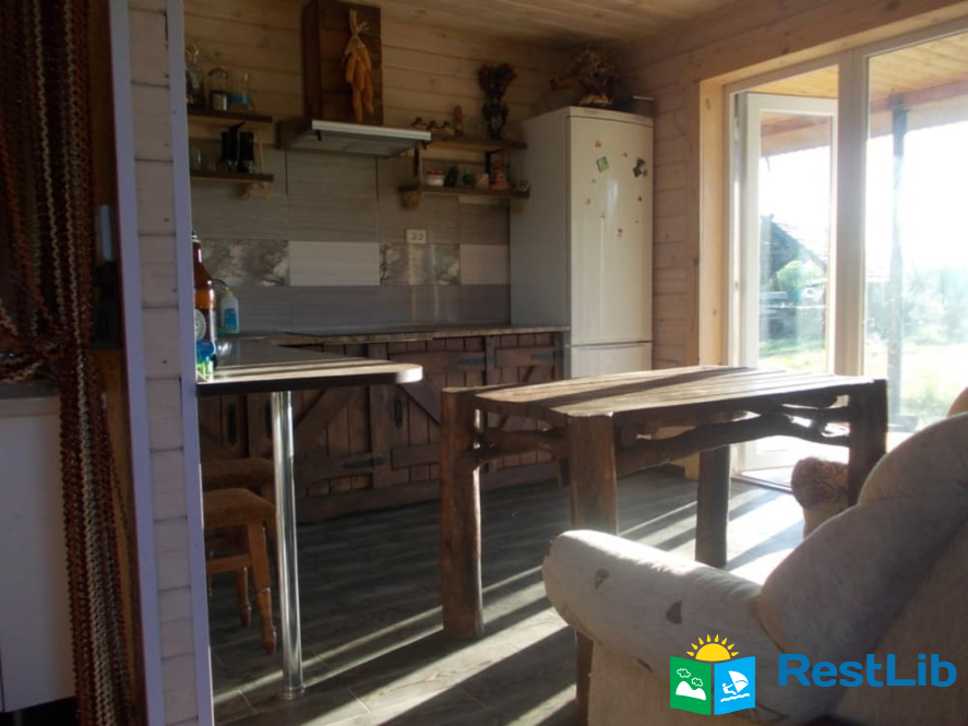 До ваших послуг дерев'янний будинок, розділений на три автономні частини з окремими входами, кожна має свою кухню з панорамним виглядом на озеро та санвузол (душ,туалет, умивальник).