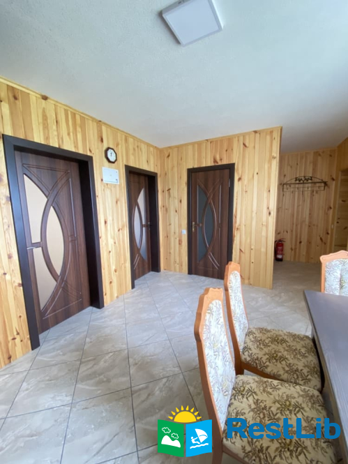 - Кухня (обідній стіл та 8 стільців, електроплита, холодильник, необхідний посуд та електрочайник, телевізор та WIFI);