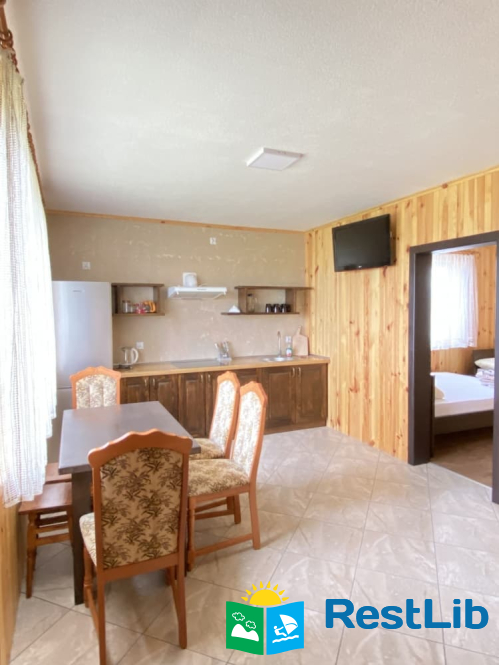 - Кухня (обідній стіл та 8 стільців, електроплита, холодильник, необхідний посуд та електрочайник ,телевізор та WIFI);