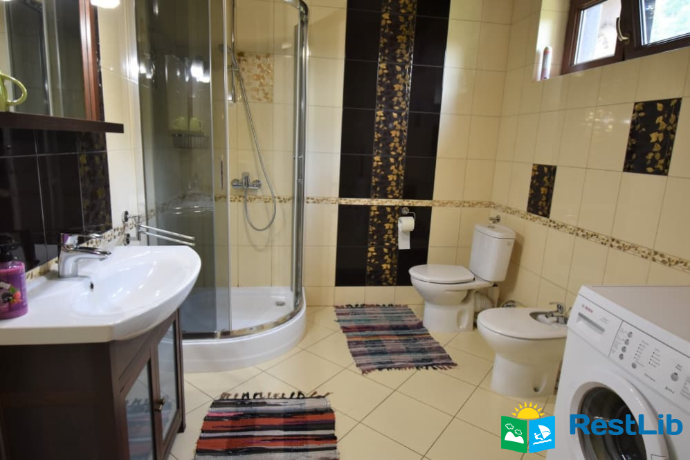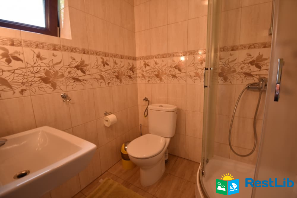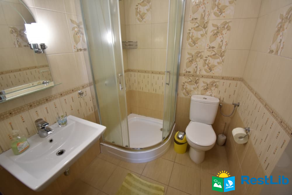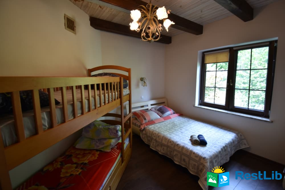 Три спальні кімнати: в двох двоспальне ліжко та санвузол (душ, умивальник, туалет). В третій двоспальне ліжко + дитяче двоярусне, вхід до санвузла (душ, туалет, біде, пральна машина) з холу.