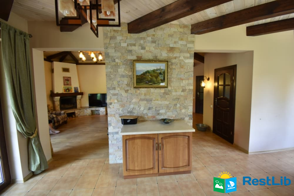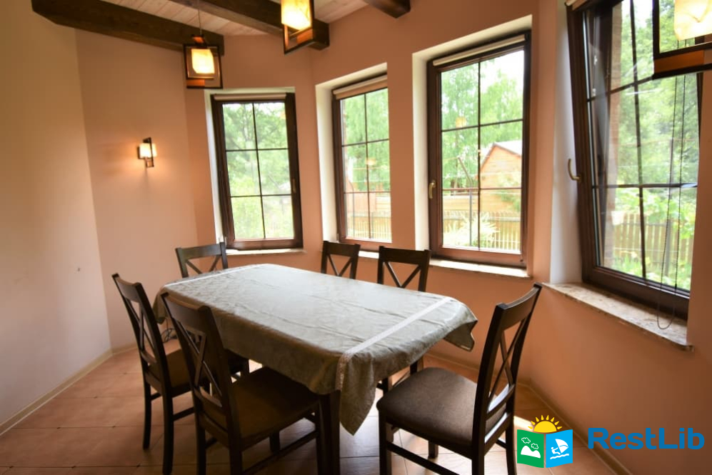 Всередині котеджу приємна прохолода, кондиціонер не потрібен. Великі вікна забезпечують хороше природнє освітлення.