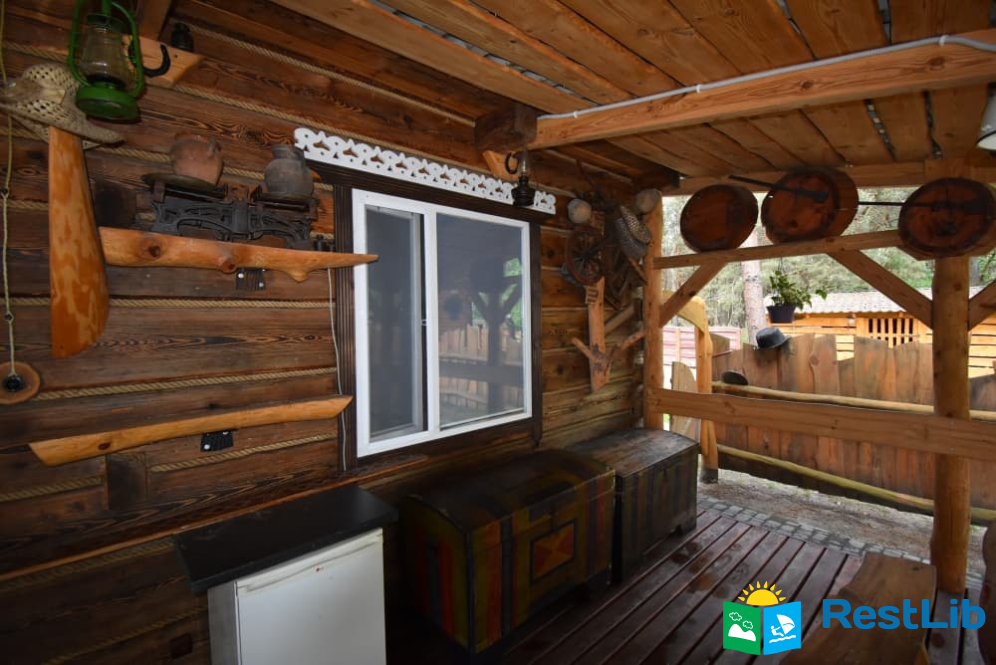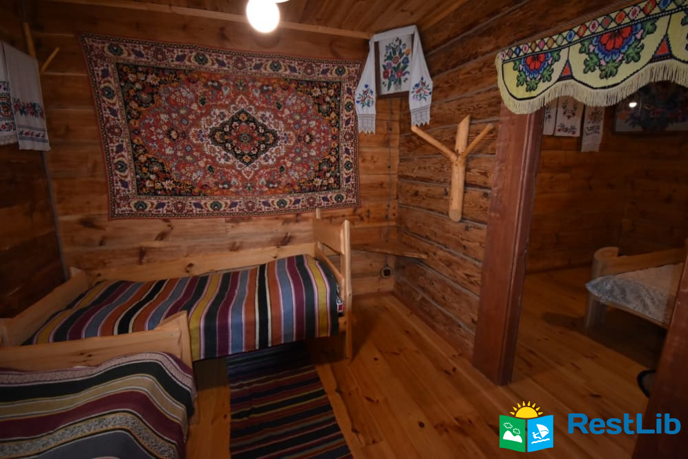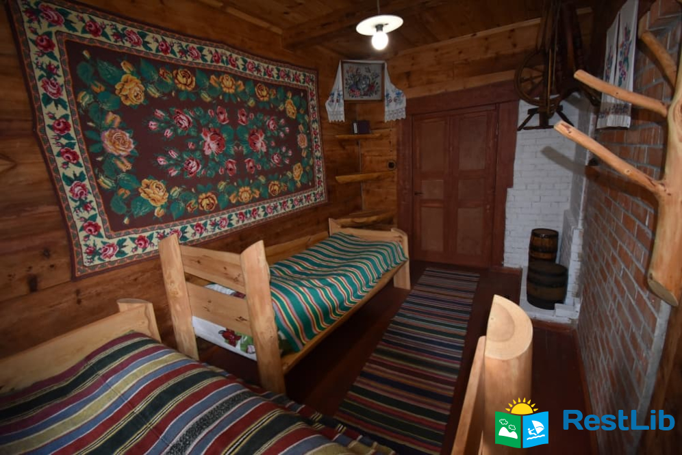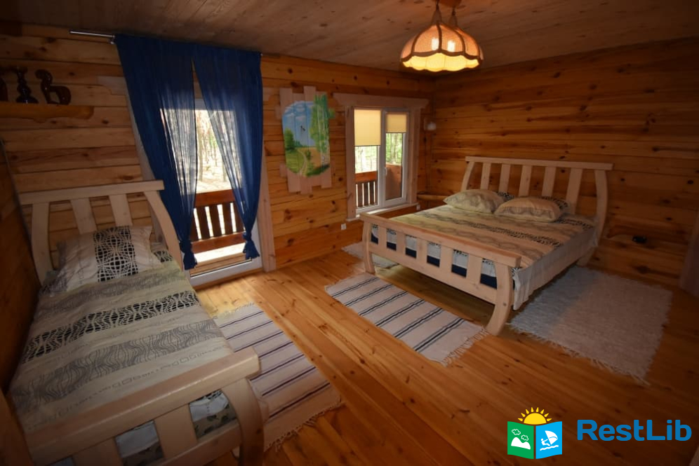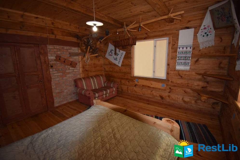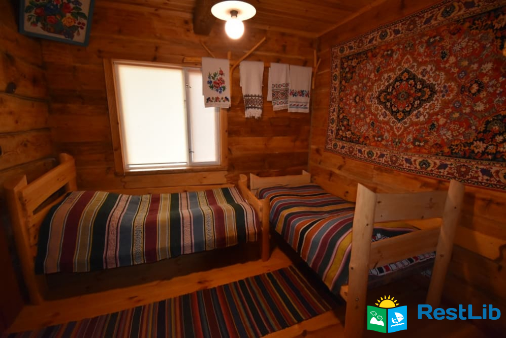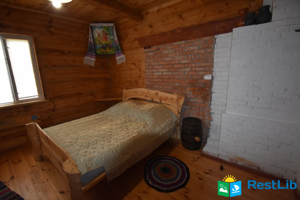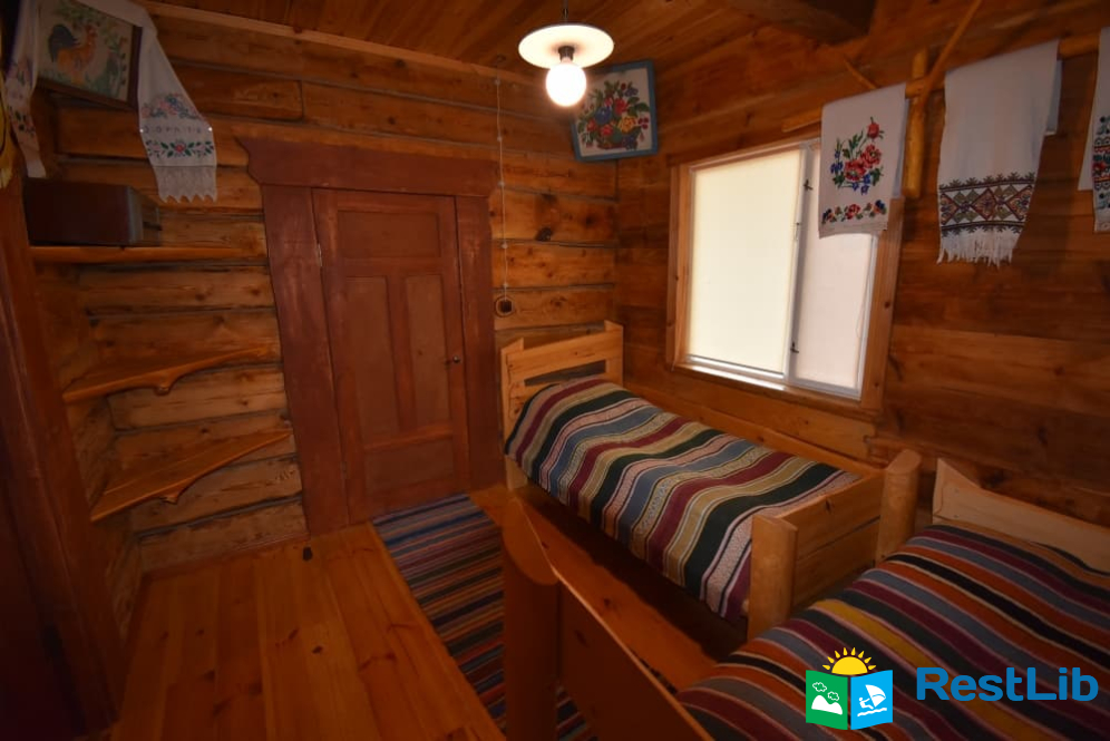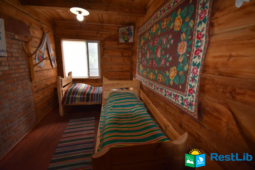 На території 2 котеджі на 8 осіб які знаходяться посеред лісу, в 20 метрах від озера. Кожен котедж виконаний в старовинному стилі, в кожній кімнаті страдавні знаряддя праці, глечики, і багато іншого.