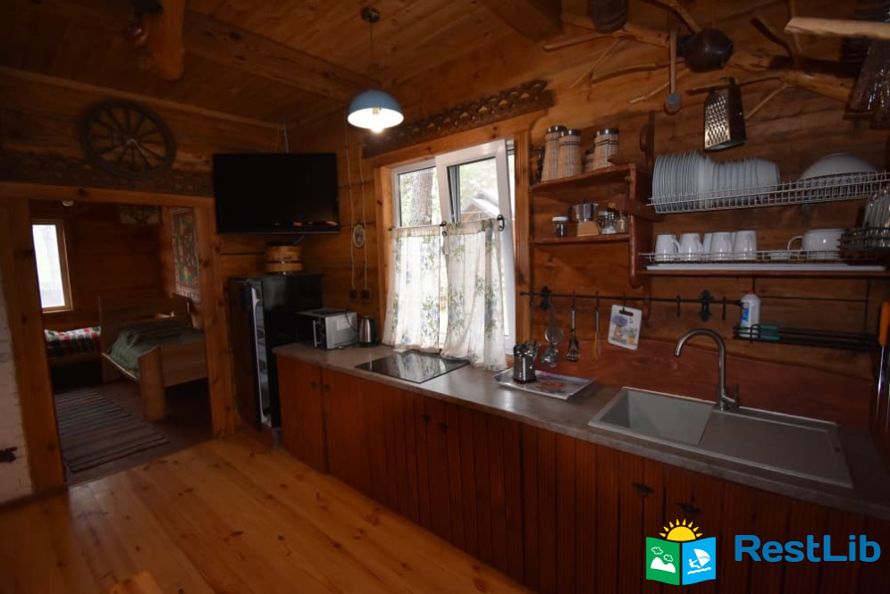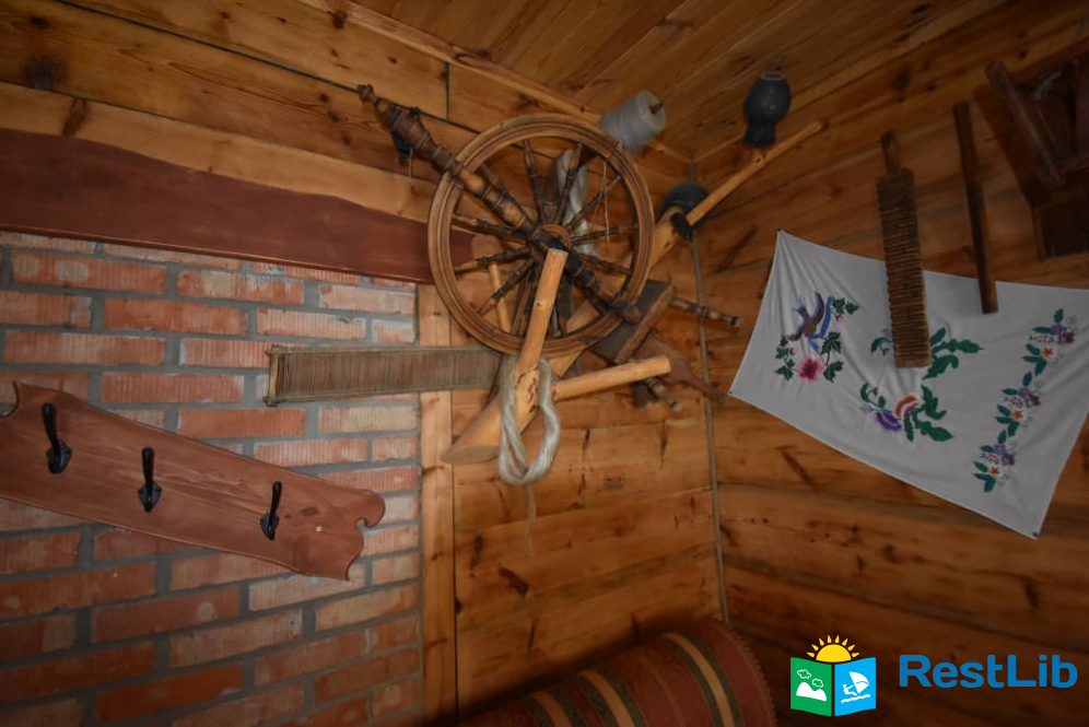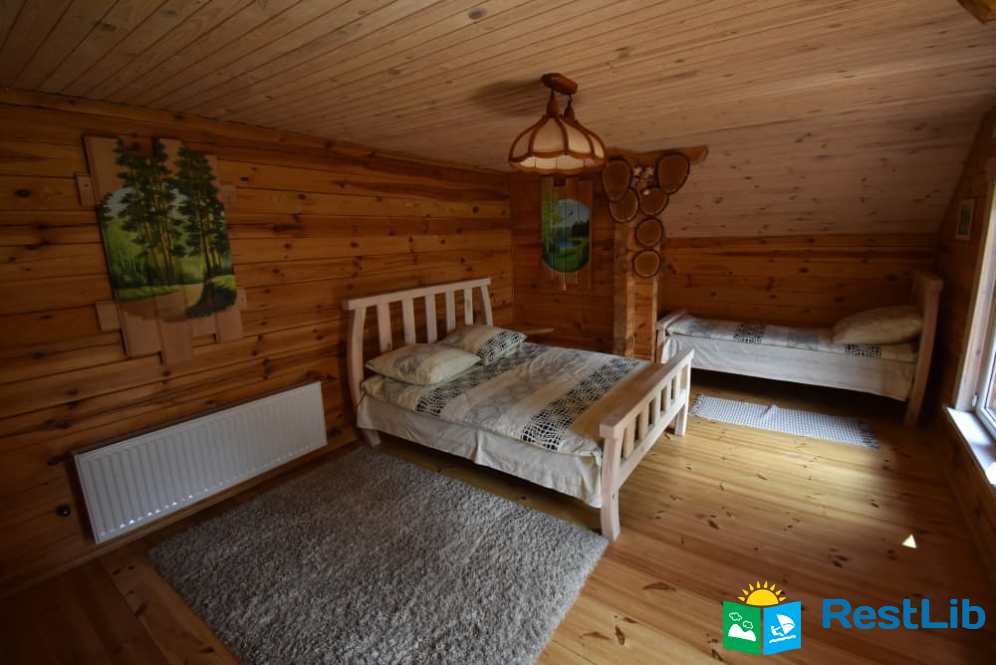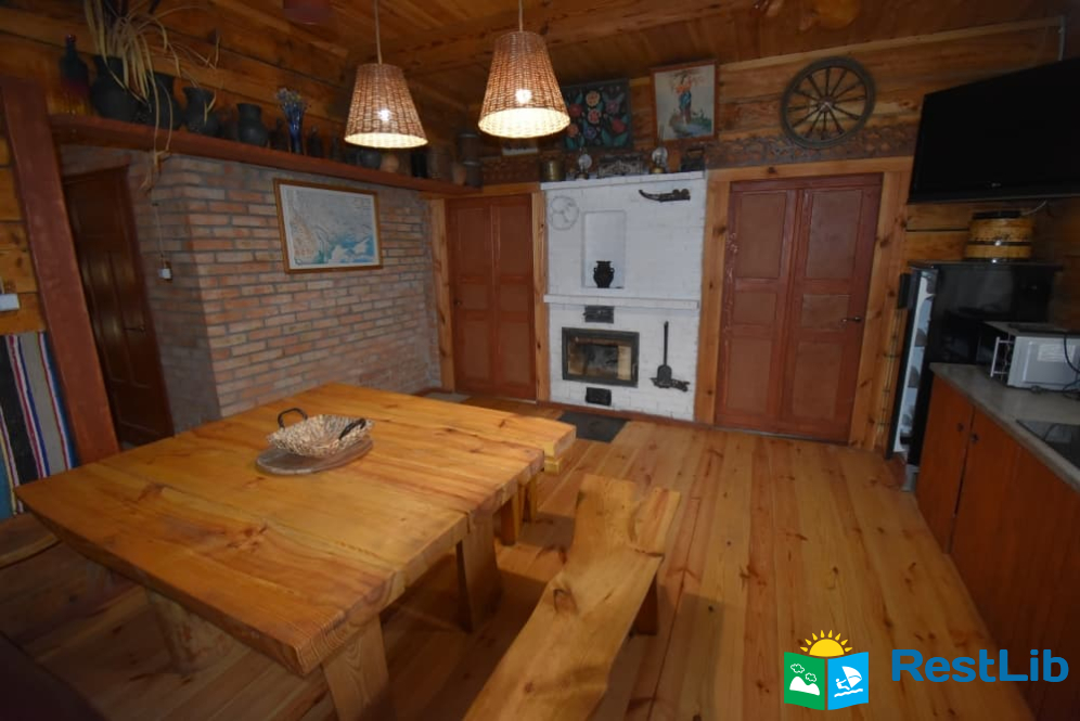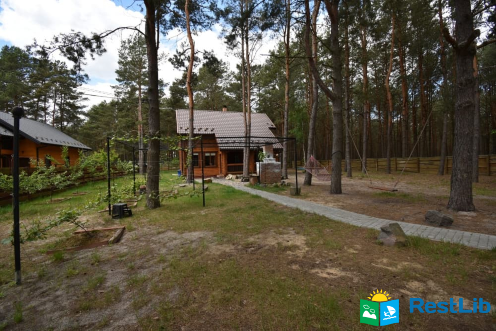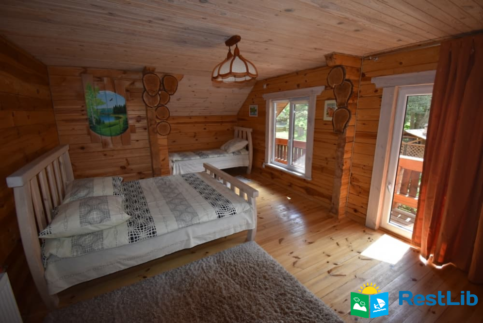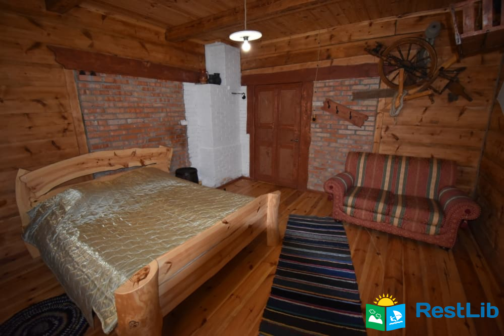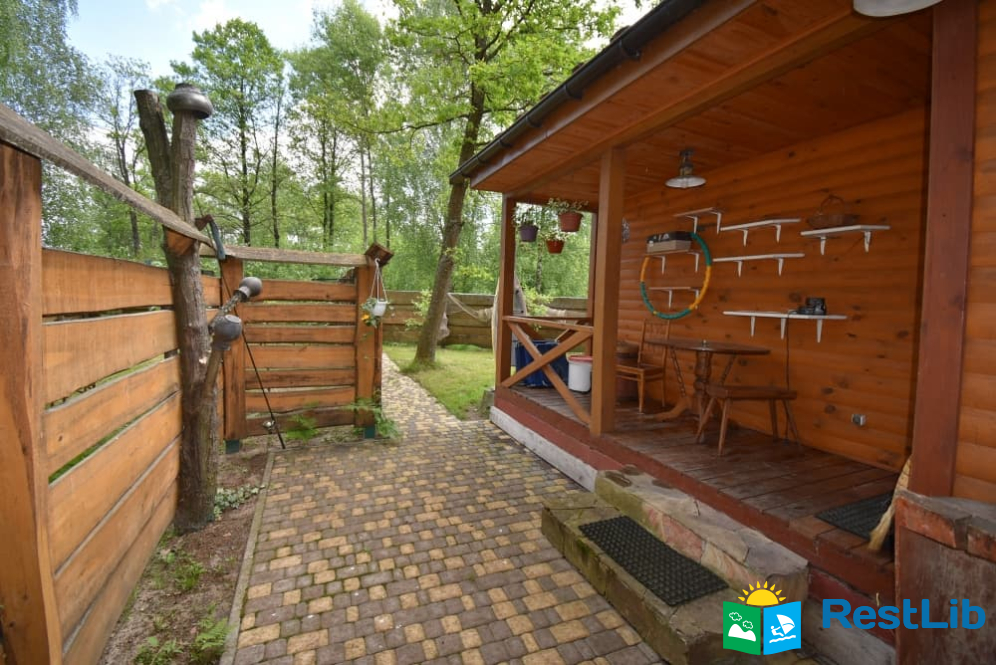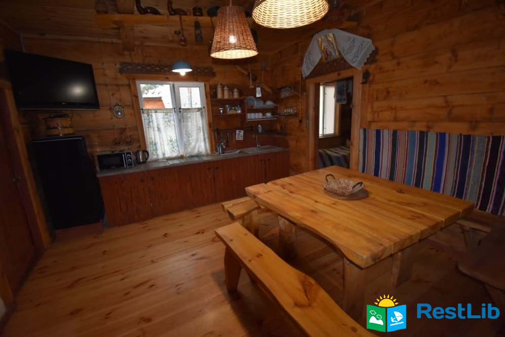 На території 2 котеджі на 8 осіб які знаходяться посеред лісу, в 20 метрах від озера. Кожен котедж виконаний в старовинному стилі, в кожній кімнаті страдавні знаряддя праці, глечики, і багато іншого.