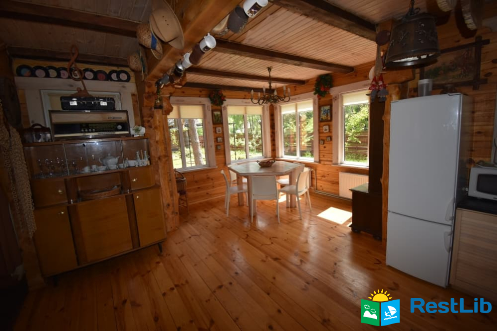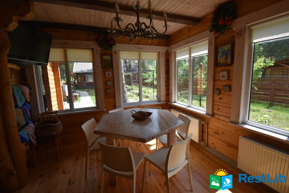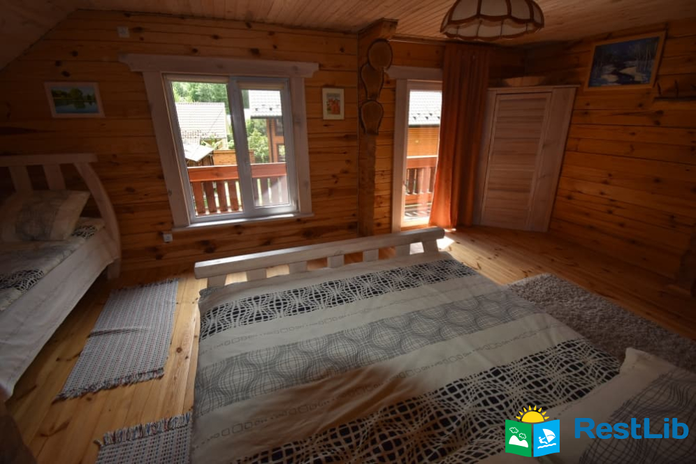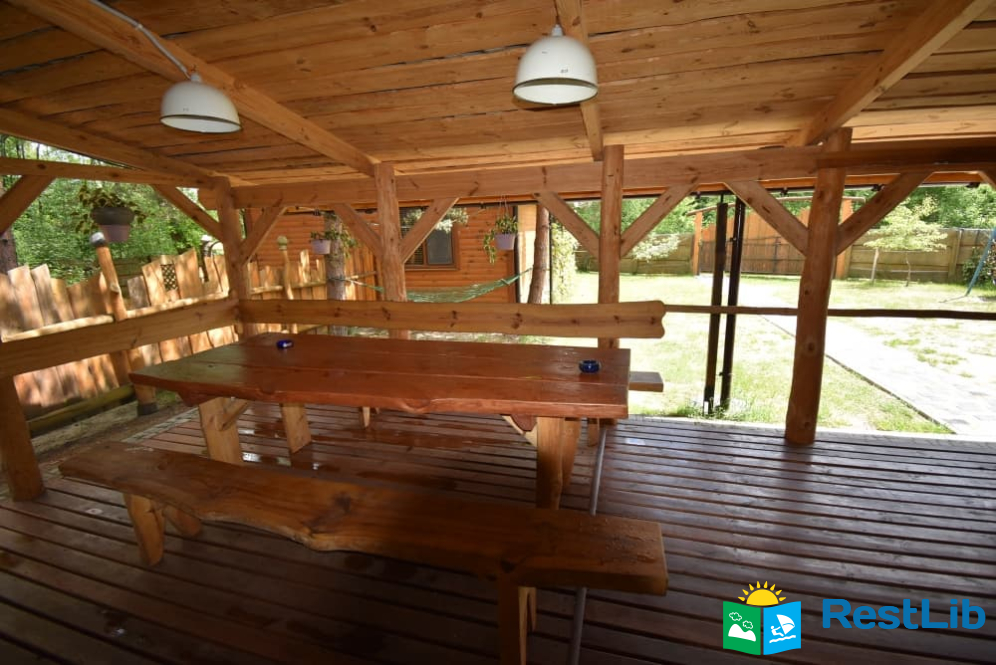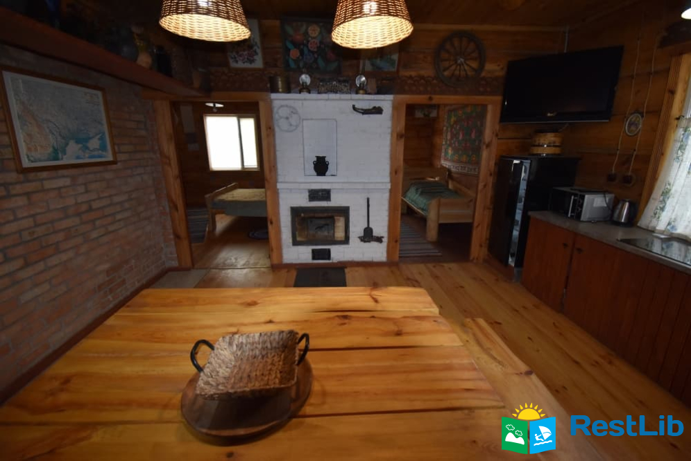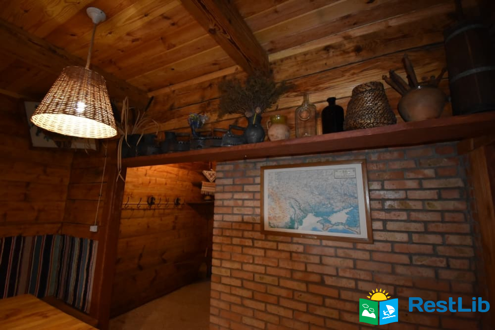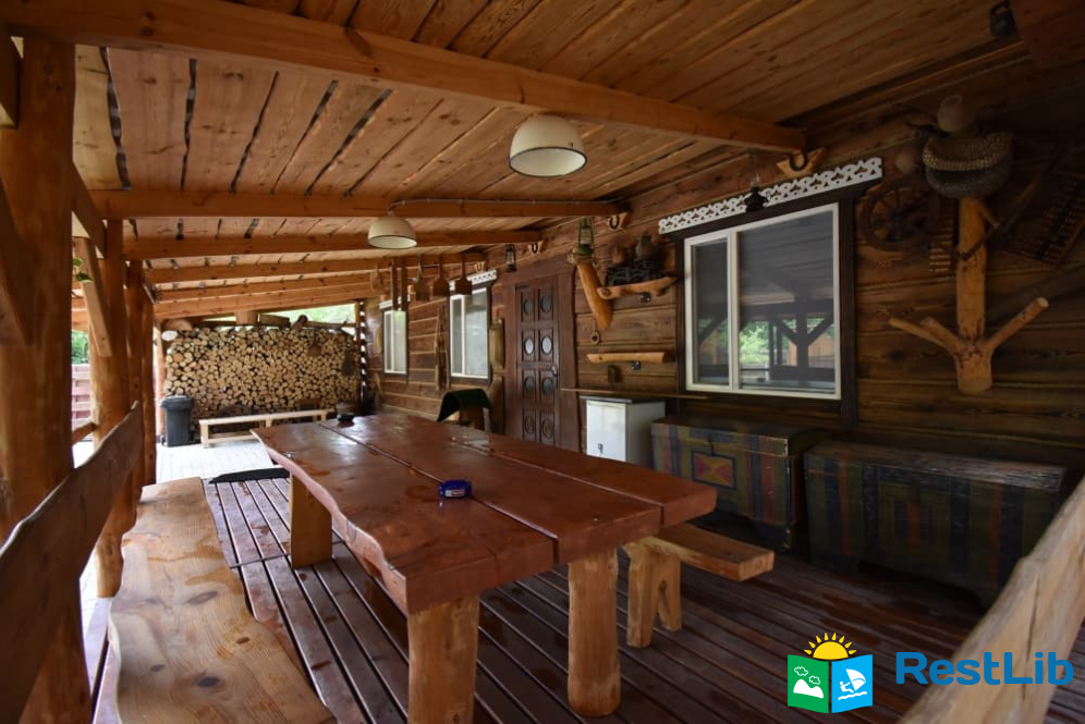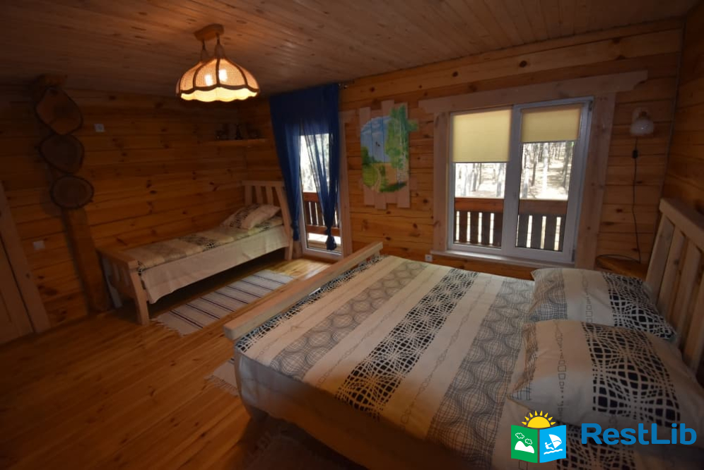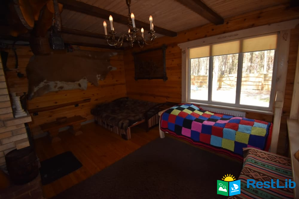 На території 2 котеджі на 8 осіб які знаходяться посеред лісу, в 20 метрах від озера. Кожен котедж виконаний в старовинному стилі, в кожній кімнаті страдавні знаряддя праці, глечики, і багато іншого.