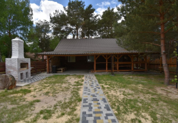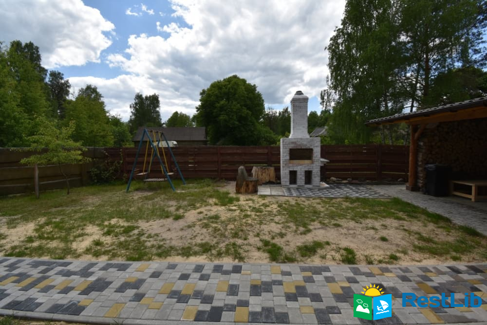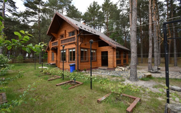 Котедж з закритою територією та окремим заїздом. Велика крита тераса перед входом з столом та лавками, зона для приготування страв на вогні, дитячий майданчик, гамак, гойдалка. Прямий вихід до озера.