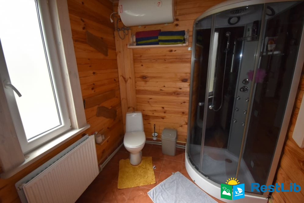 Складається: вітальня (кухонний куток, техніка, посуд, телевізор, обідній стіл, камін), санвузол суміщений (душ, туалет, умивальник). 4 двомісні спальні кімнати, одна з них двокімнатна (одна прохідна). 2 кімнати з односпальними ліжками, 2 з двоспальними ( в одній є диванчик).