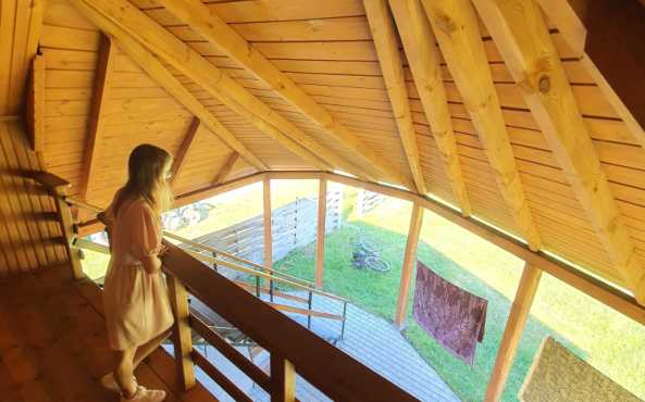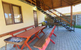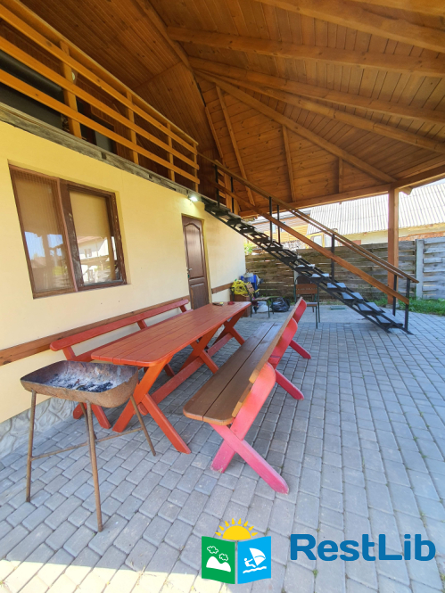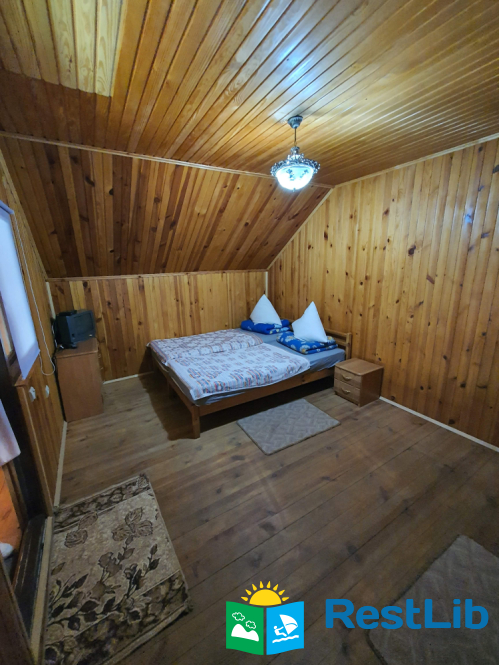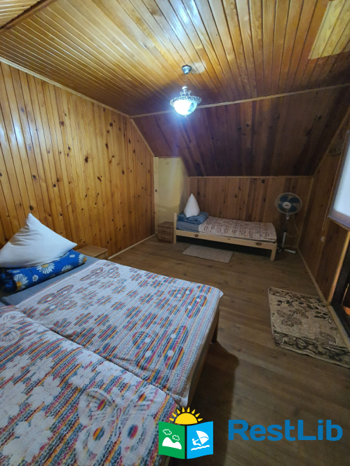 Здається в оренду від 2-х діб автономна половина будинку: Всі кімнати власні, без спільного використання. Опис кімнат: Спальня - Другий поверх, 3 одномісних ліжка (2 з'єднаних у двоспальне, при потребі розділяються), у спальні телевізор та підлоговий вентилятор для охолодження у спеку. Є балкон, на якому поставлений диван та журнальний столик. Кухня - 1 поверх, на кухні є раковина, холодильник, мікрохвильова піч, чайник, 2-х камфорна електроплита, комплект необхідного посуду, а також комфортний розкладний диван шириною 1м(Розрахований на 1 особу) Ванна Кімната - Вхід з кухні, у ванній кімнаті є душ, унітаз та раковина, гаряча вода цілодобово. Також простора тераса під накриттям, яка рятує від палючого сонця, на території розміщена гойдалка, батут для дітей та мангал