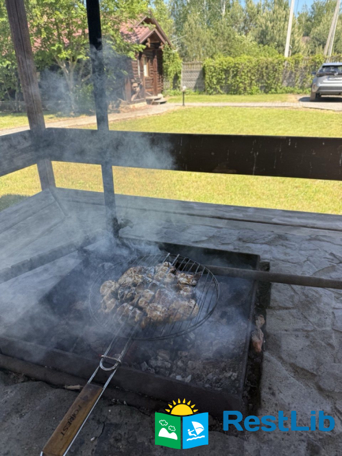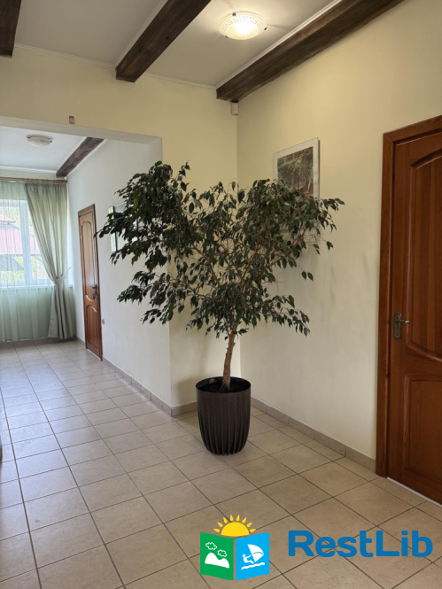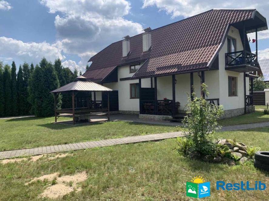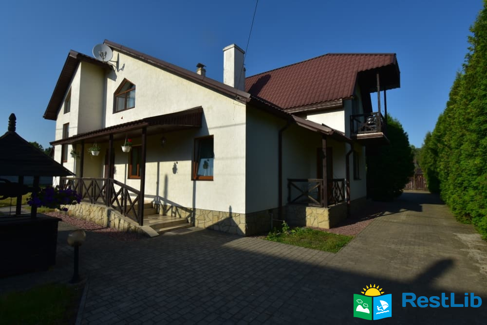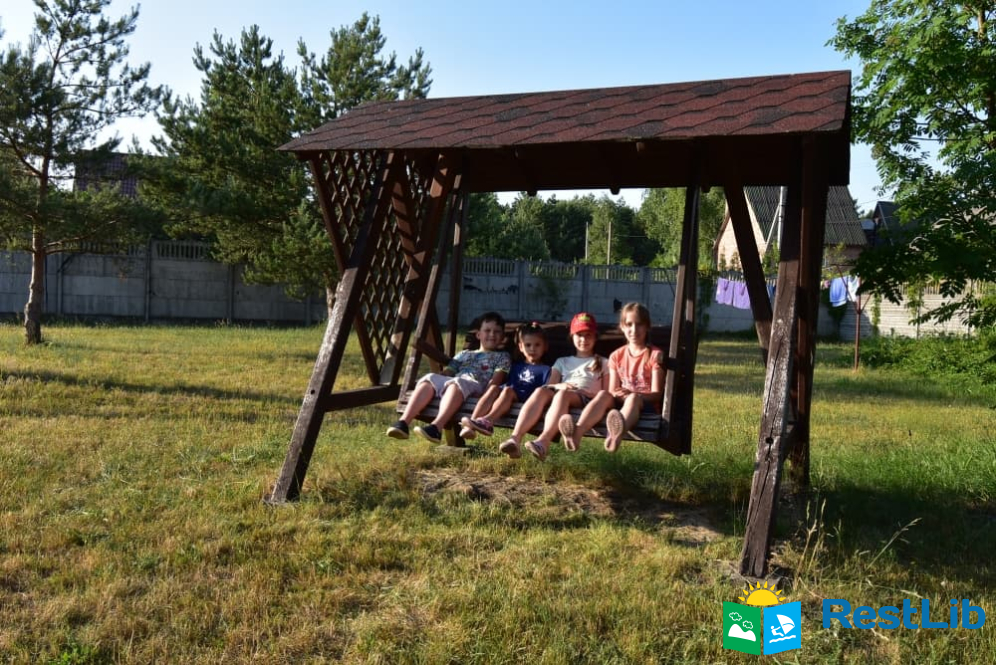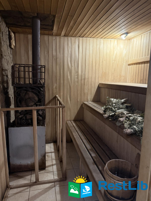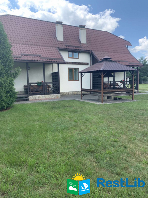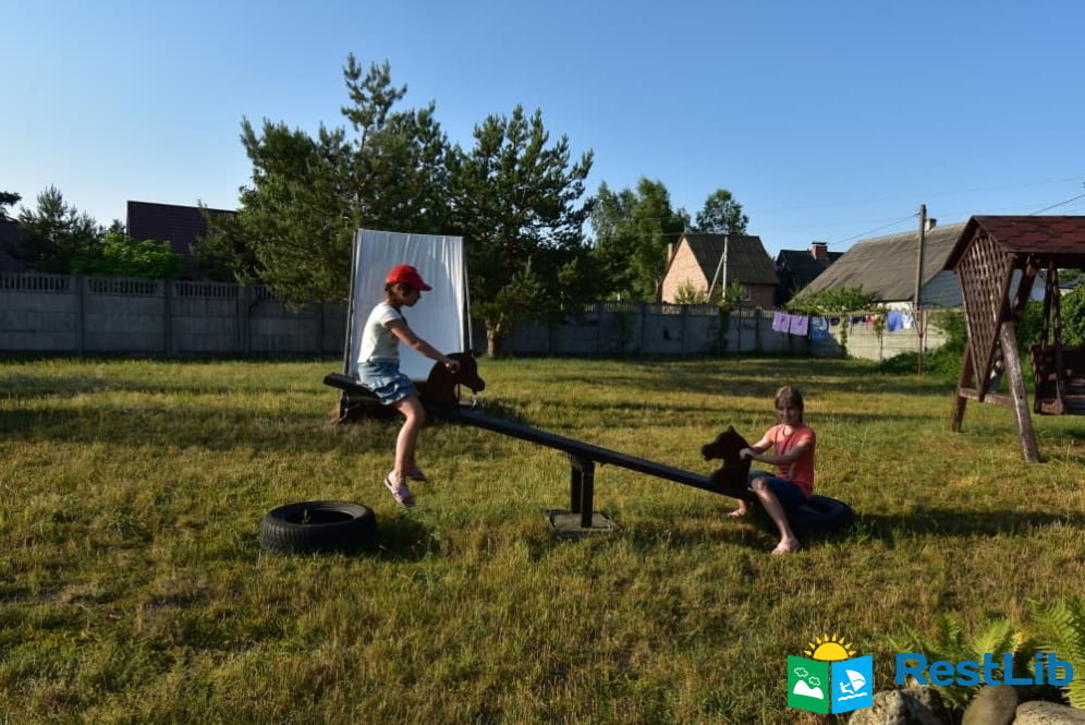 В будинку: двоспальне ліжко + розкладний диван, вентилятор, телевізор, холодильник, комод, тумбочка. Санвузол (душ, туалет, умивальник). В будинку баня з басейном. Кухня загальна на території. Біля входу в будинок крита тераса. В будні дні можливі знижки.