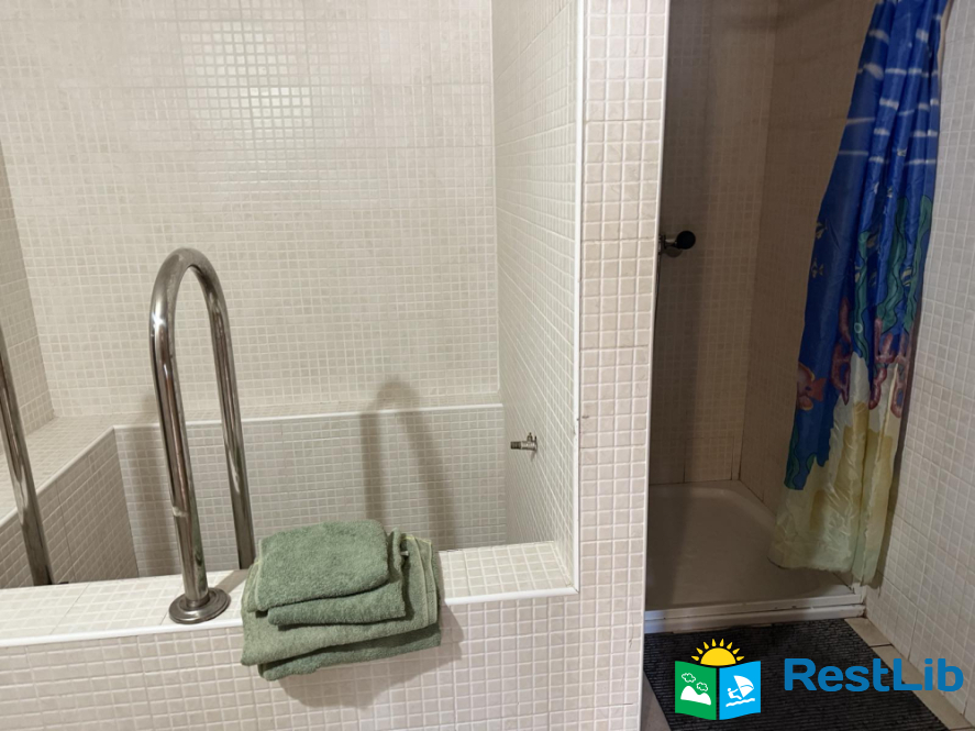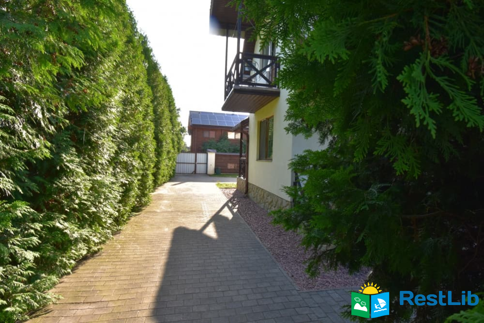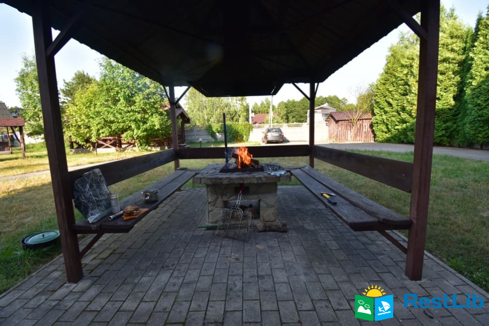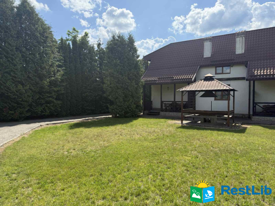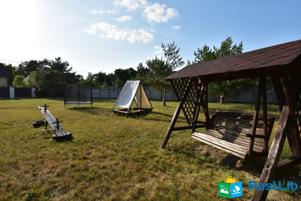В будинку: двоспальне ліжко + розкладний диван, вентилятор, телевізор, холодильник, комод, тумбочка. Санвузол (душ, туалет, умивальник). В будинку баня з басейном. Біля входу крита тераса.