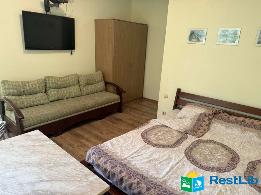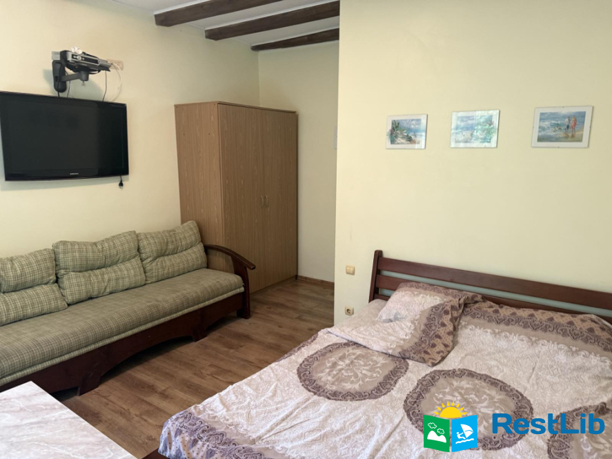 Номер №1 (2+2) В номері двоспальне ліжко, розкладний диван, обідній столик, телевізор з плоским екраном, власний кухонний куточок, власний санвузол.
