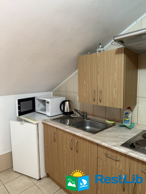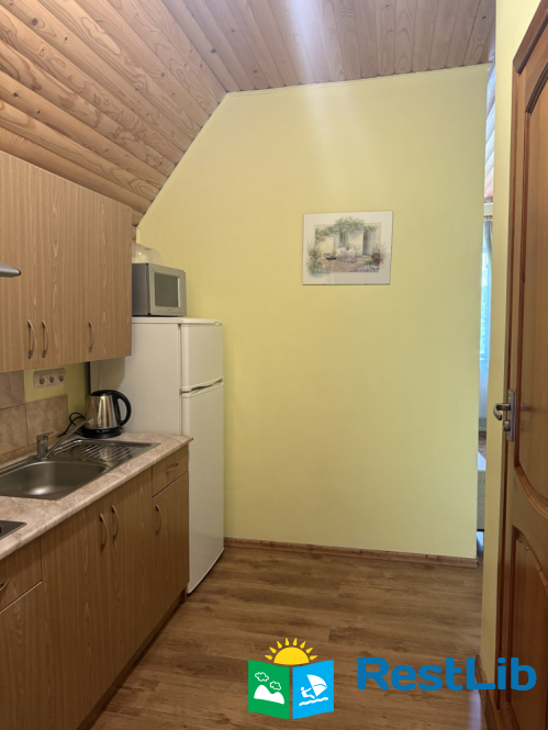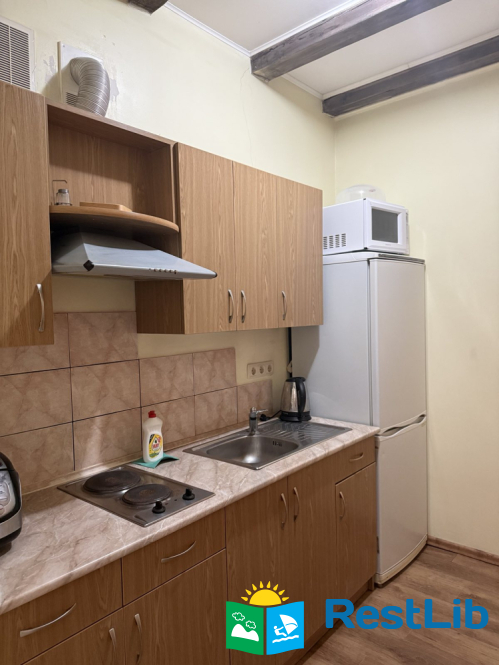 Двокімнатний номер №5 (2+2) В номері двоспальне ліжко, диванчик для дітей, шафа для одягу, обідній столик, власний кухонний куточок, власний санвузол, балкон.
