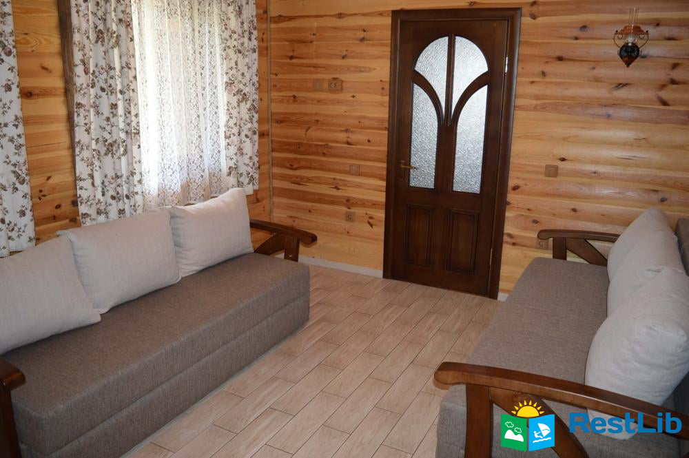 Номер двокімнатний : два розкладні дивани, кухня, холодильник, плазмовий телевізор, чайник, санвузол (душ, туалет, умивальник, фен), рушники, літня тераса