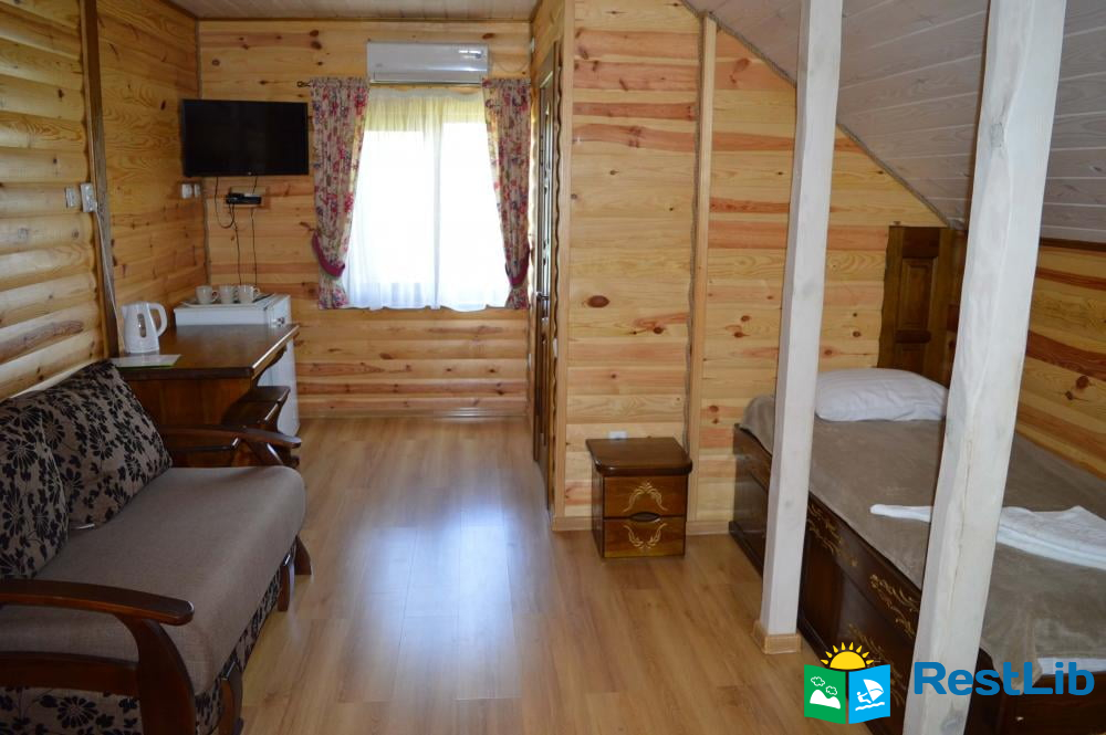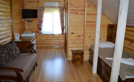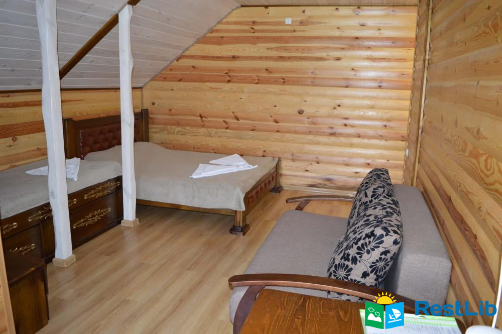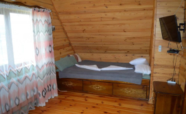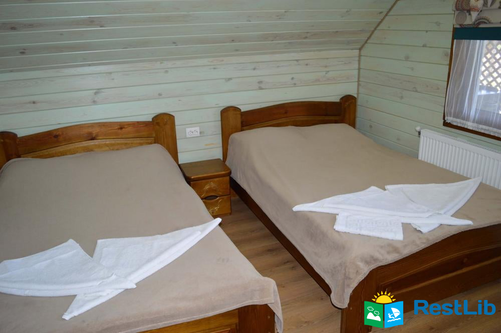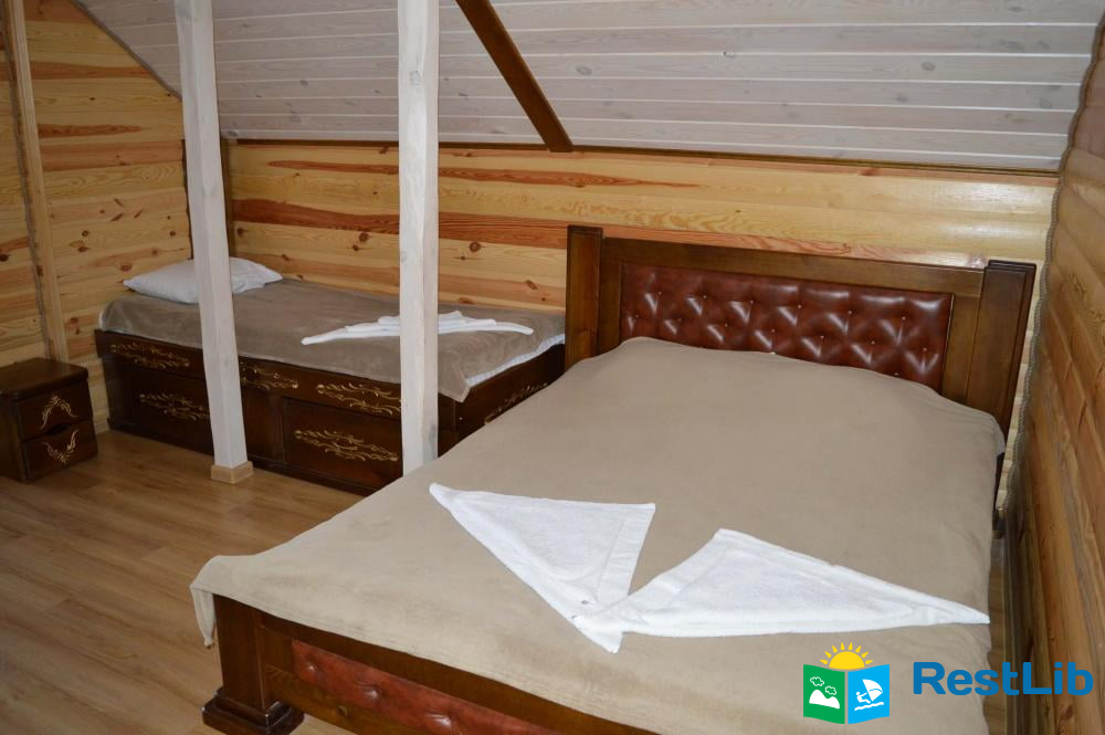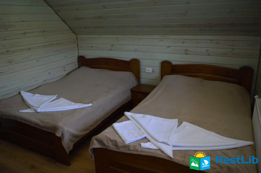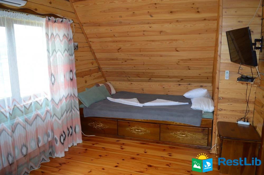 • окремий будинок на 6 персон з банею, 2 кімнати на другому поверсі, та сауна на першому (входить у вартість проживання)