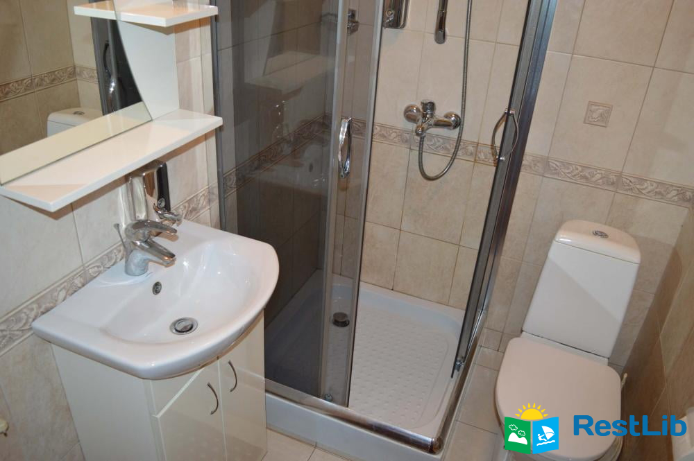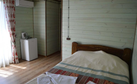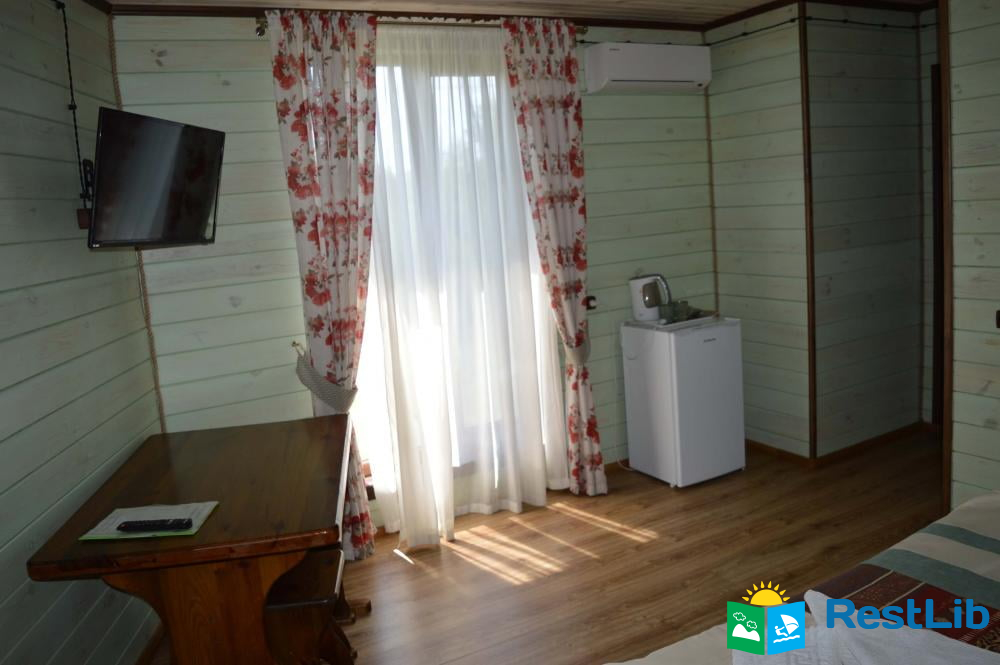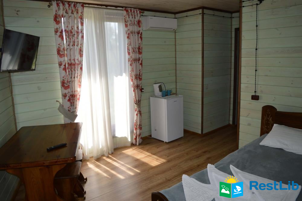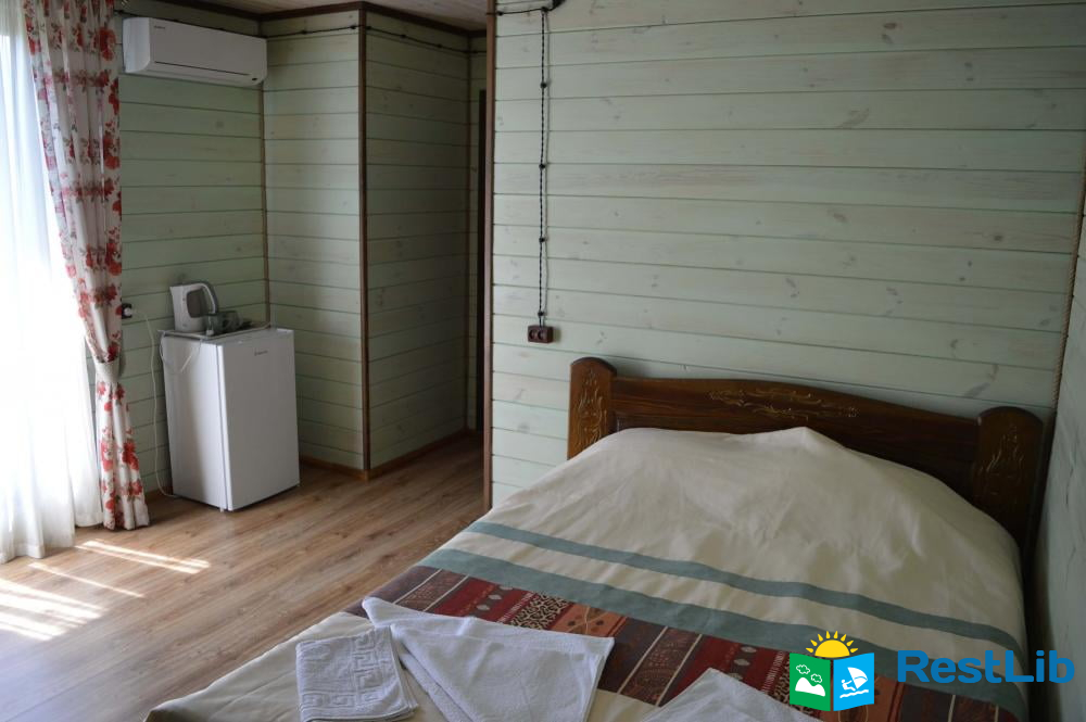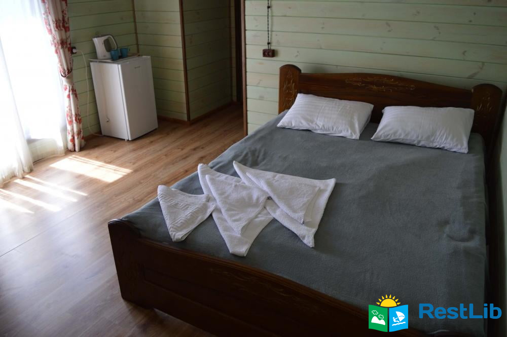 Номер однокімнатний : двоспальне ліжко, кондиціонер, холодильник, плазмовий телевізор, чайник, санвузол (душ, туалет, умивальник, фен), рушники