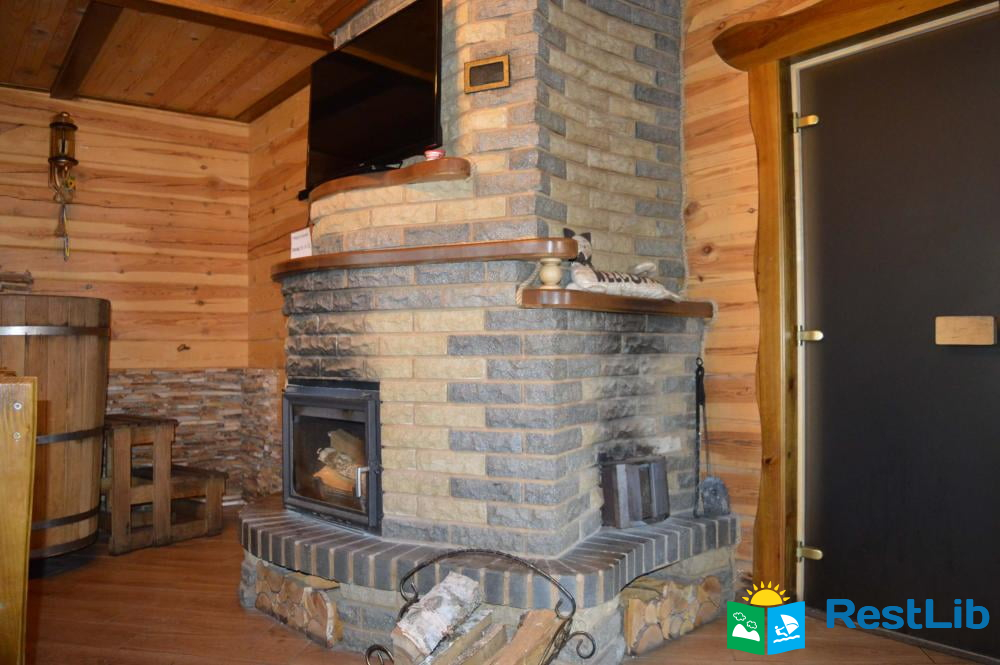 Номер двокімнатний : вітальня з м'яким кутком, каміном, кухня, в одній кімнаті двоспальне ліжко+ диван, в іншій 2 дивани,холодильник, плазмовий телевізор, чайник, санвузол (душ, туалет, умивальник, фен), рушники