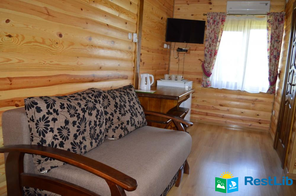 Номер однокімнатний : двоспальне ліжко, диван, кондиціонер, холодильник, плазмовий телевізор, чайник, санвузол (душ, туалет, умивальник, фен), рушники