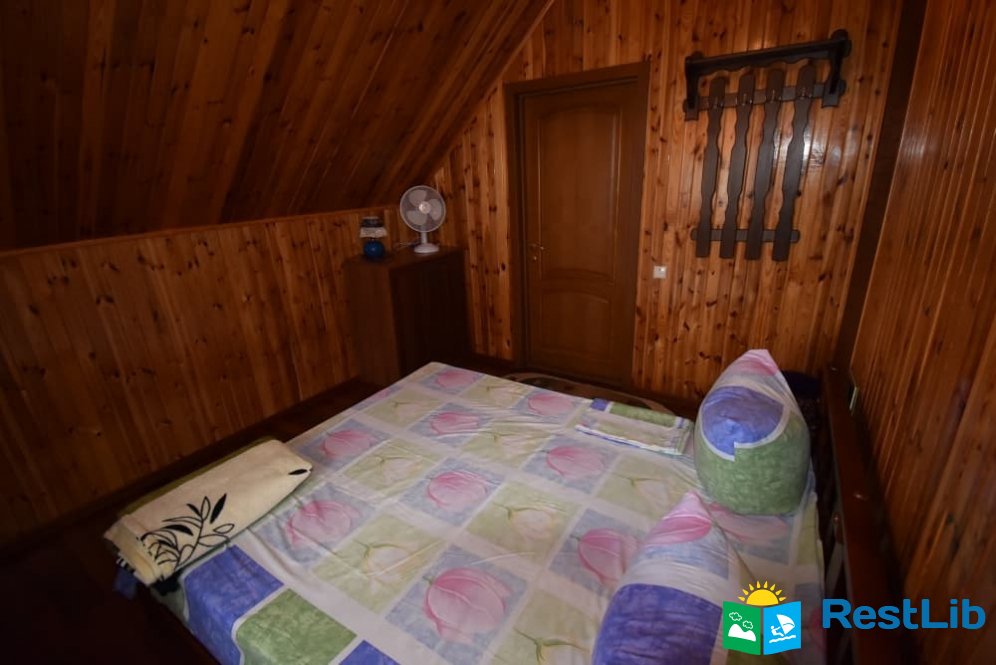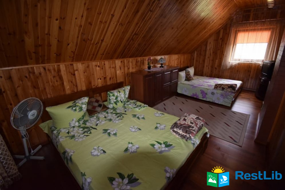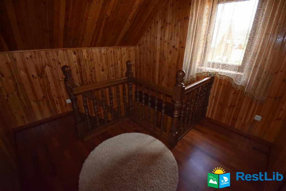 Другий поверх: хол, одна кімната з одним двоспальним ліжком, друга кімната з двома двоспальними ліжками.