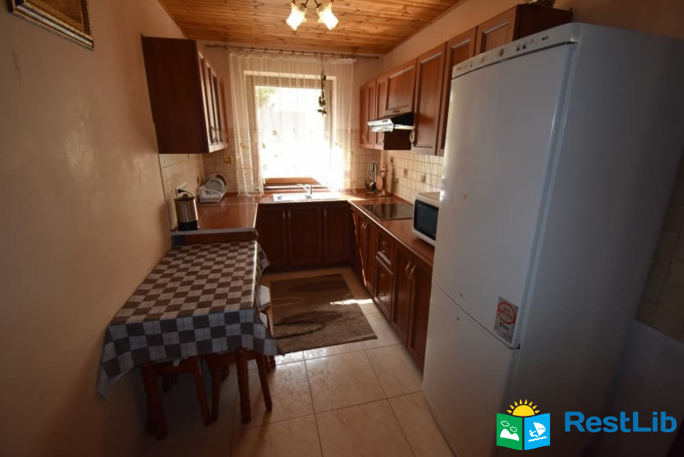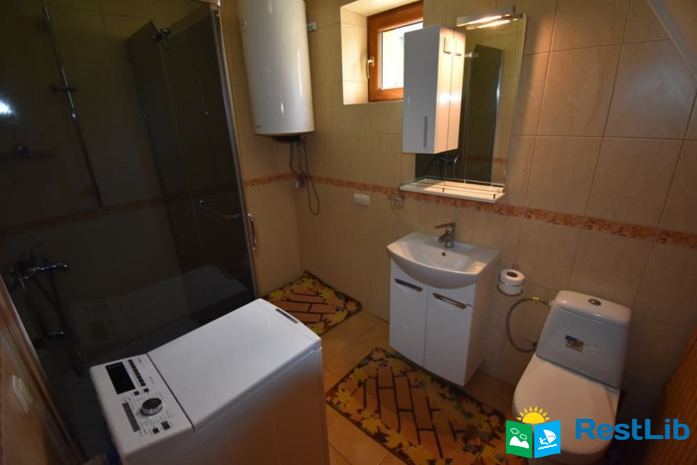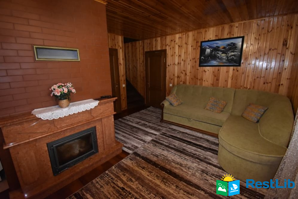 Перший поверх: прихожа з розкладним диваном та м'якими кріслами, вітальня з розкладним диваном, каміном, телевізором, повністю устаткована кухня, ванна кімната.