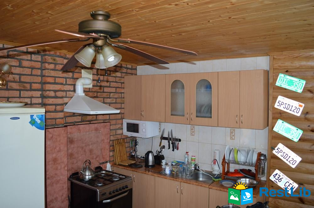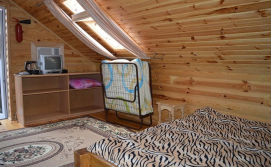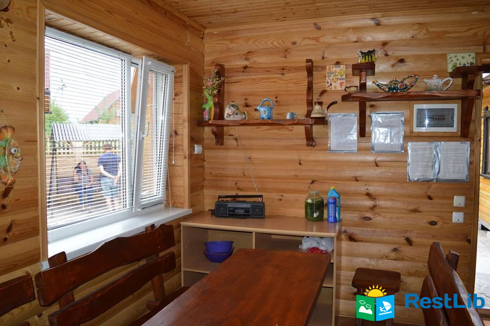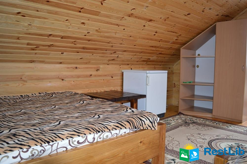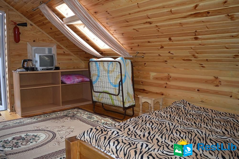 • Також база включає 3 окремо розташованих дерев`яних будиночка. Кожен розрахований на 3 людини. У будиночках є: односпальне і двоспальне ліжка, телевізор, холодильник, шафа. Душ і 2 санвузли знаходяться в загальній літній кухні. Літня кухня повністю облаштована, є все необхідне для приготування і прийому їжі.