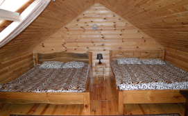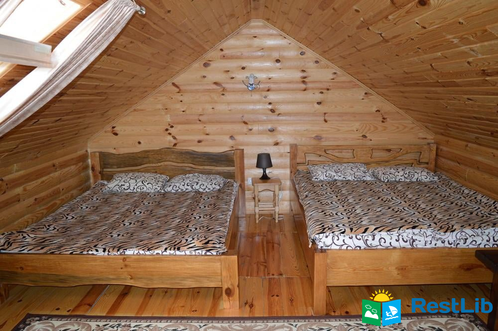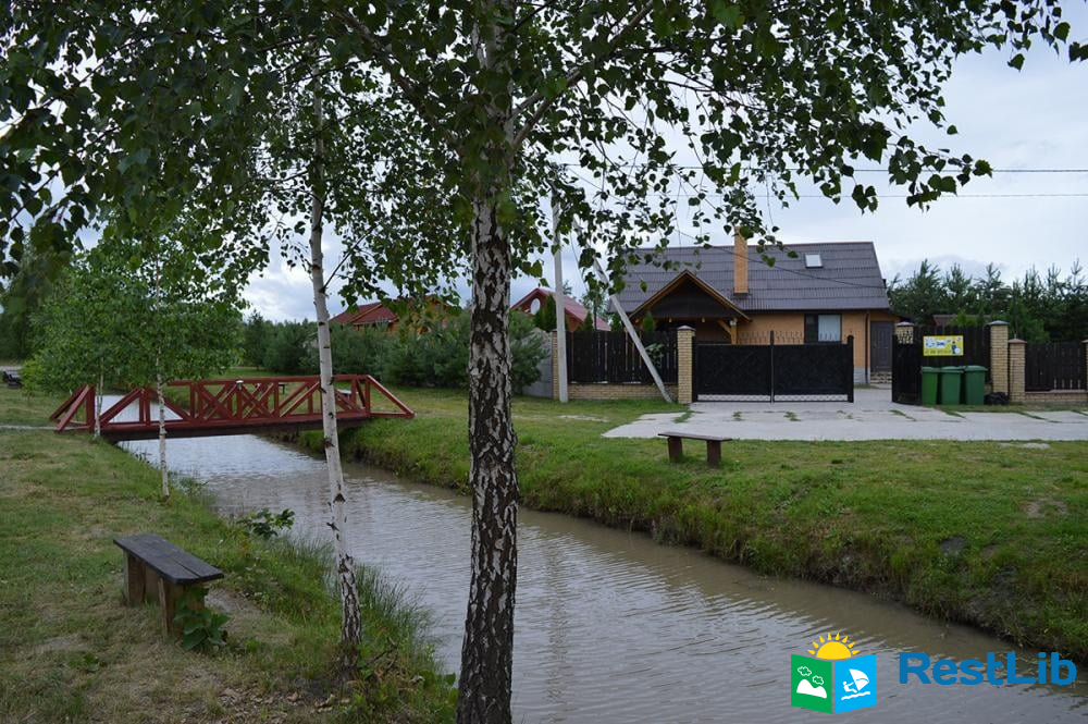 • 1-ий поверх великого центрального будинку. Розрахований він на 8 осіб. Там розташовані: кухня, 2 спальні, санвузол (душ, туалет, пральна машина), 1 великий зал з каміном. У кожній спальні телевізор і шафа. З тераси можна милуватися мальовничим видом на пляж і озеро Світязь.