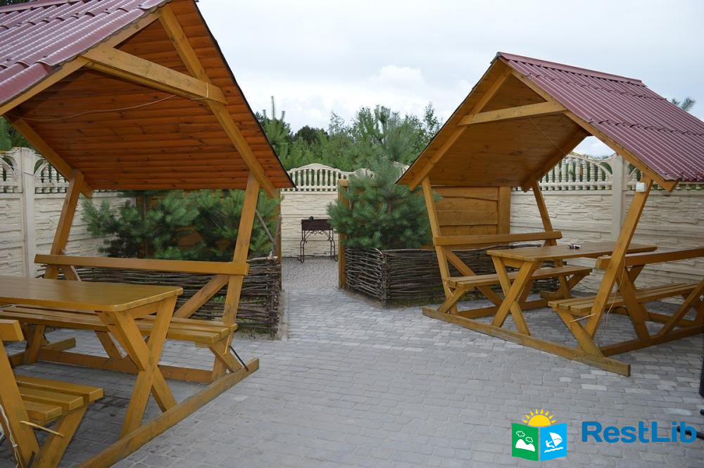 У будиночку є: односпальне і двоспальне ліжка, телевізор, холодильник, шафа. Душ і 2 санвузли знаходяться в загальній літній кухні. Літня кухня повністю облаштована, є все необхідне для приготування і прийому їжі.