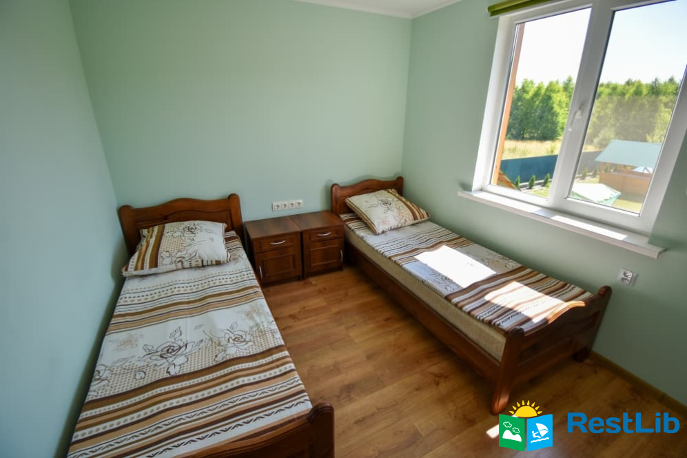 В кожному апартаменті 2 спальні кімнати (в одній двоспальне ліжко в іншій два односпальних). Може здаватися повністю котеджом (2 апартаменти) на 8 осіб.