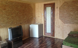 В номері є: двоспальне та односпальне ліжка, холодильник, телевізор, стіл, стільці, санвузол (душова кабіна, туалет, умивальник). Поруч з номером є альтанка.