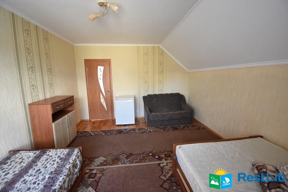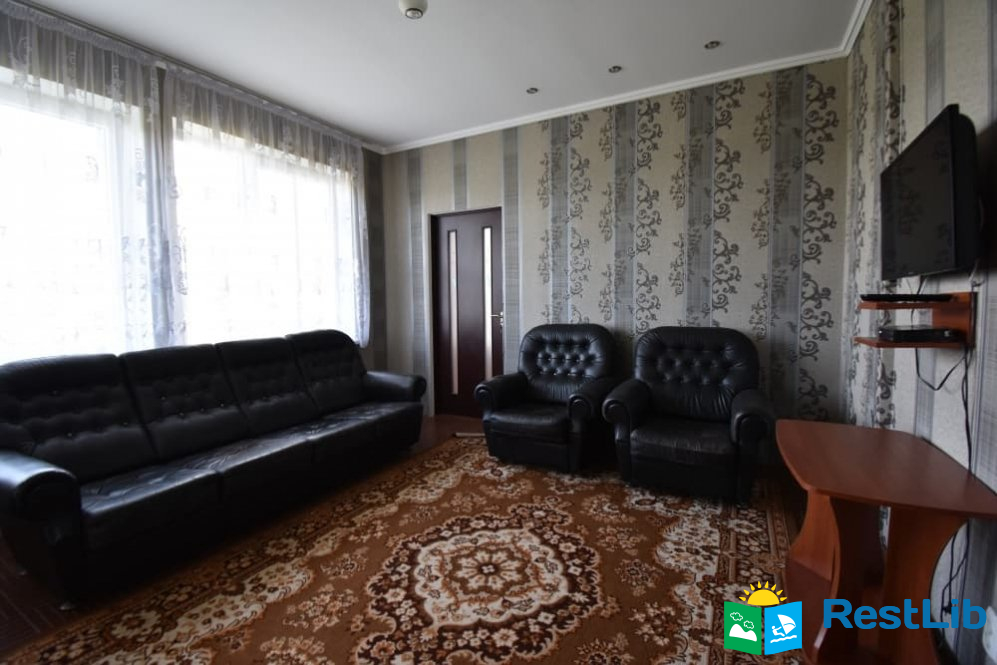 В номер входить: двоспальне ліжко, два односпальних, розкладний диван, комод, холодильник. Санвузол (душ, туалет, умивальник), кухня (кухонний гарнітур, техніка, посуд) - спільні на 4 номери. Можливий торг, уточнювати по телефоні!