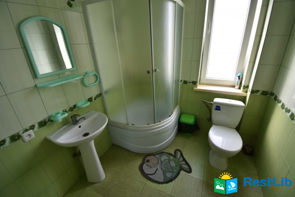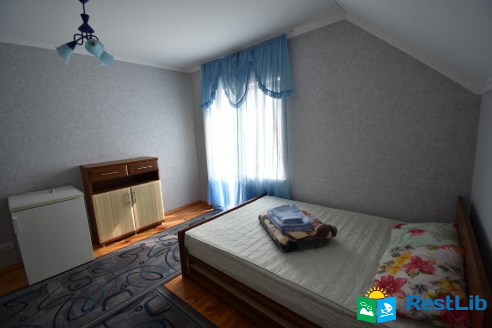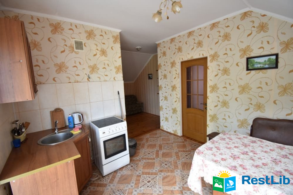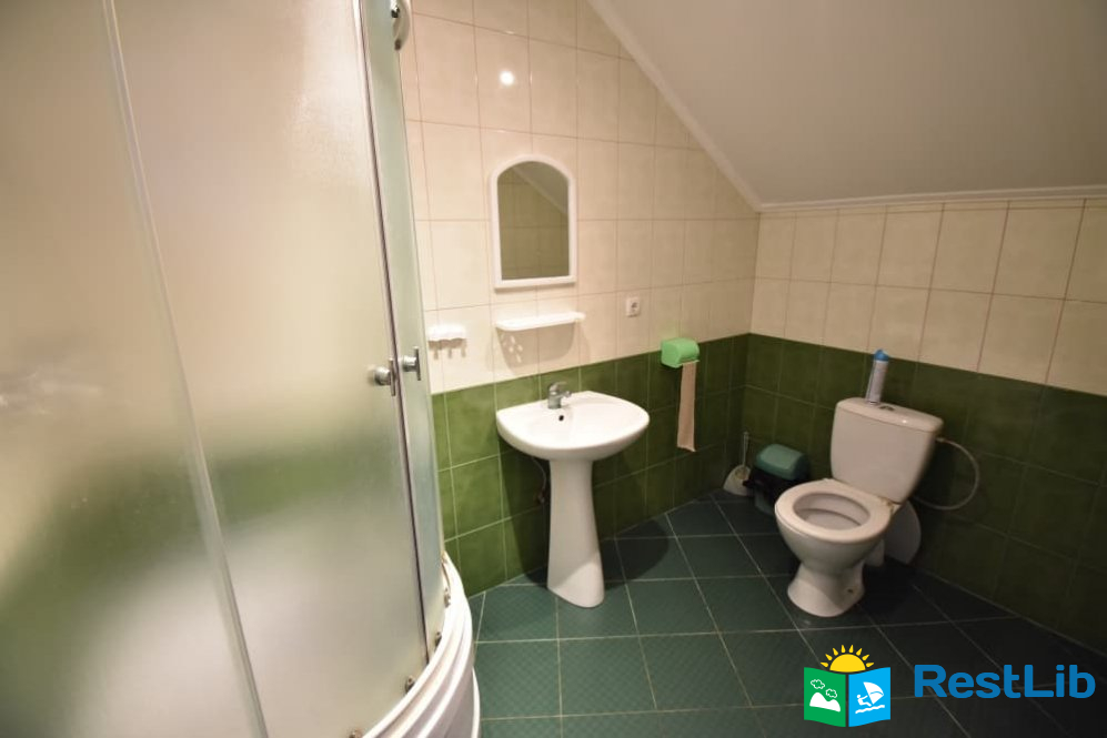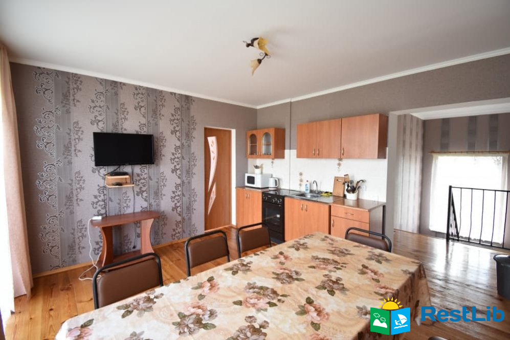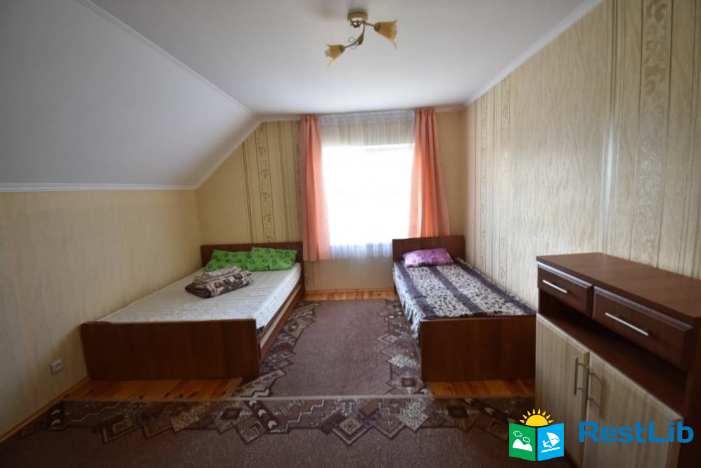 Перший будинок: на поверсі дві кімнати одна 2-ох місна, друга 3-ох - 4-ох місна (ліжко 160см і 2 розкладних крісла.) В кожній кімнаті телевізори, а також на поверсі кухня весь посуд електроплита, електрочайник, холодильник,  душ та туалет.