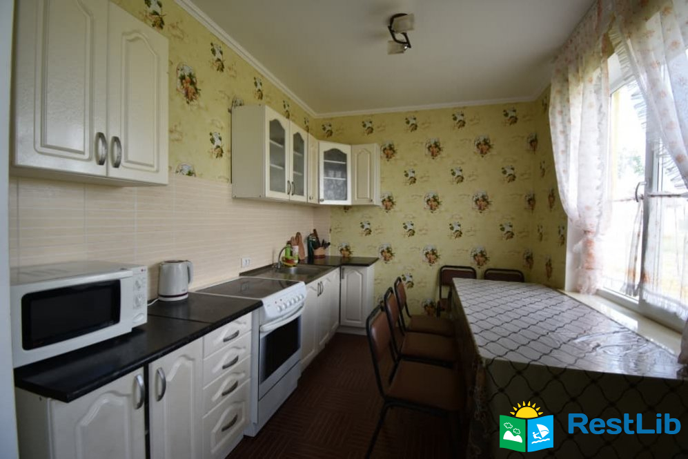 В апартамент входить: один номер чотиримісний (двоспальне ліжко + два розкладні крісла) та один двомісний (два односпальні ліжка). Кухня (кухонний гарнітур, техніка, посуд), санвузол (душ, туалет, умивальник). Можливий торг, уточнювати по телефоні!