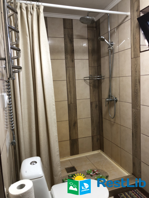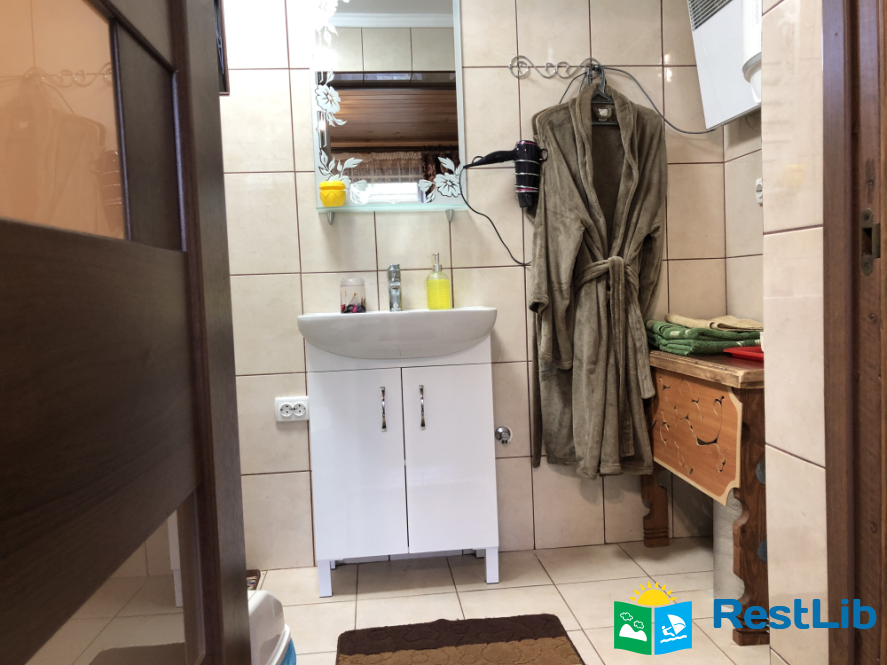 Санвузол: душова кабіна, унітаз, умивальник, фен, рушникосушка, (Кількість рушників - 2шт на особу, заміна рушників по потребі). Косметичні засоби , тапки, халат - безкоштовно.