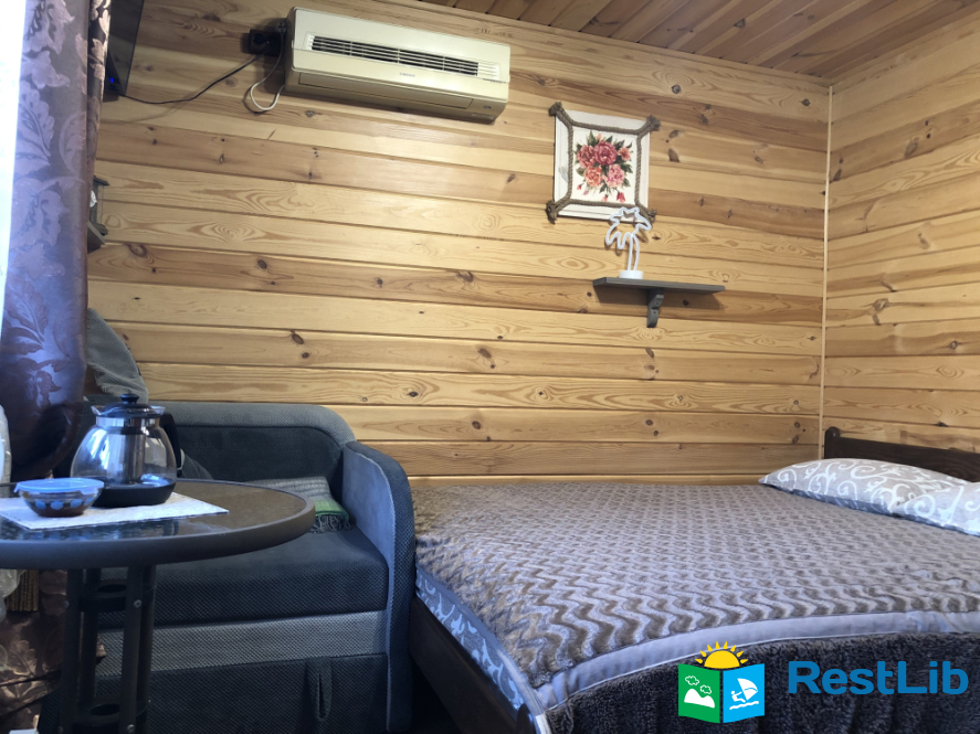Спальня: Двоспальне ліжко (євро),розкладний диван, 2 тумбочки біля ліжка, світильник - нічний, шафа для одягу, стіл з 2-ма мягкими кріслами, вішаки для одягу, плазмовий телевізор, Т2, вентилятор-тепло - холод.москітна сітка.