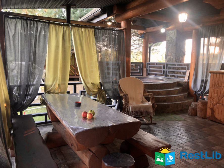 У вартість входить: полотенця, шапочки, гумові тапки, чай на травах, купель з холодною водою, крита тераса для відпочинку в літній період (в зимовий кімната відпочинку), користування мангалом та зоною відпочинку з зонтиками і лежаками на території.