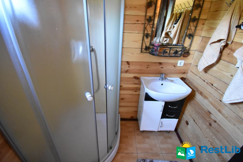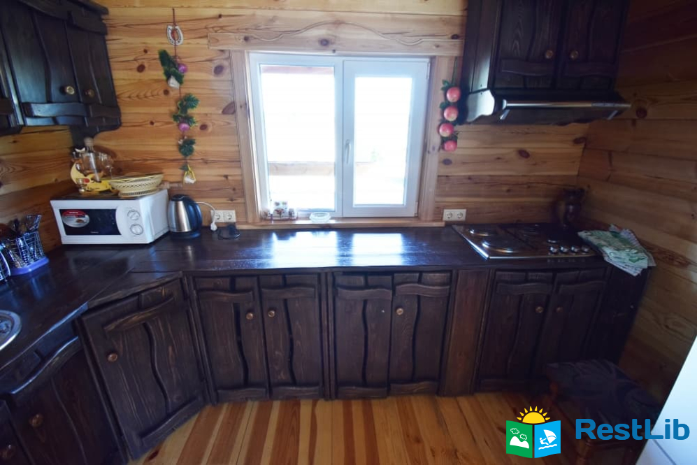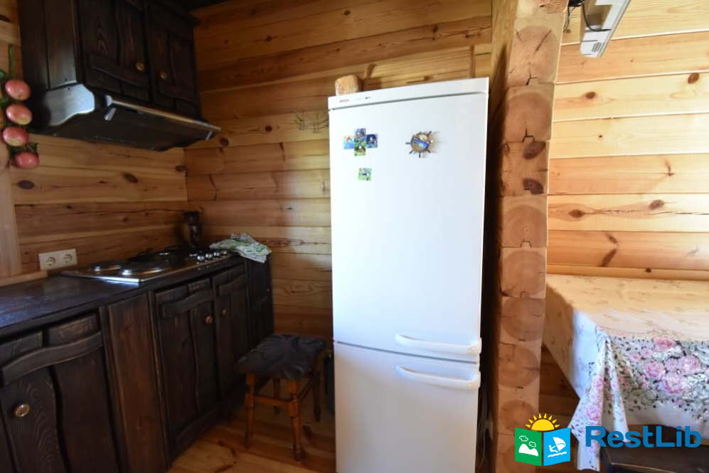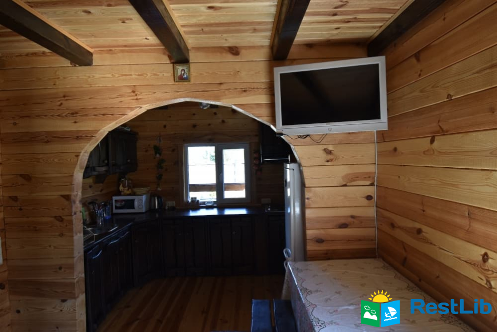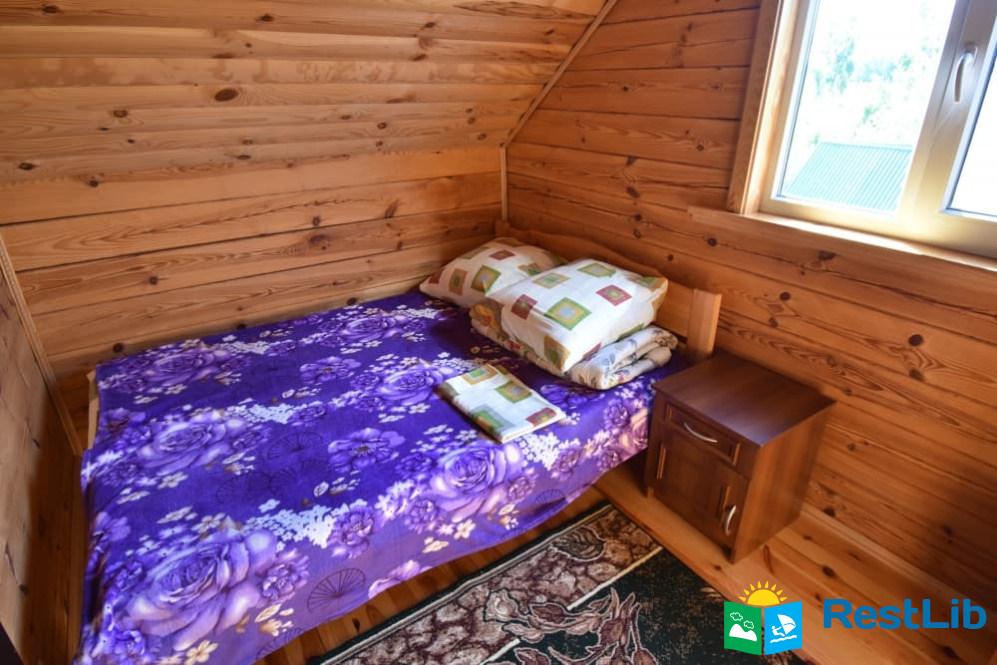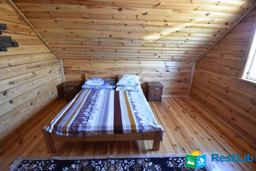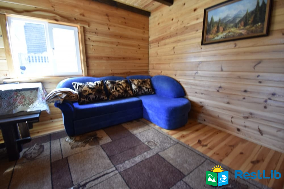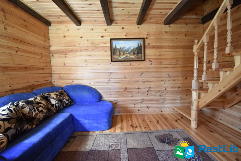 На першому поверсі: кухня-вітальня (кухня повністю укомплектована) вітальня з розкладним диваном, телевізором. Санвузол (душ, туалет, умивальник). Один двомісний номер (розкладний диван, телевізор, вентилятор, шафа).