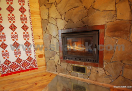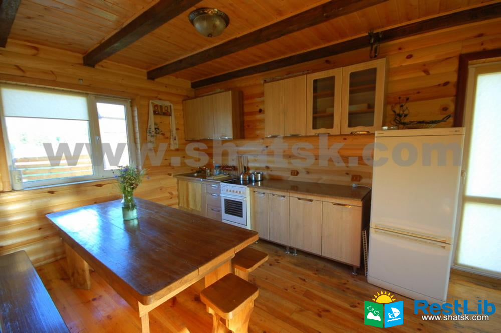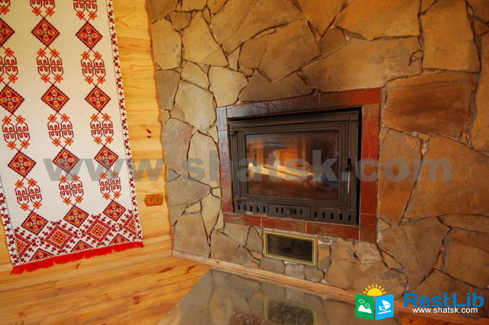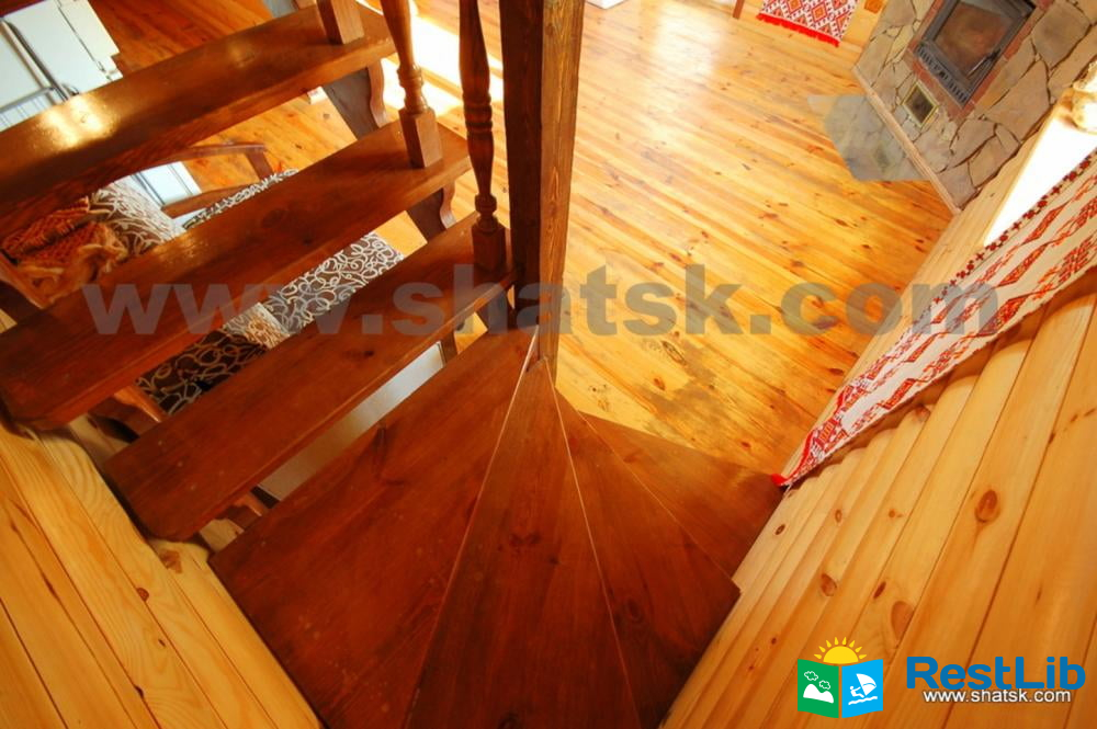 Перший поверх: прихожа, кухня-вітальня з диваном та каміном, кухня повністю облаштована (електроплита, чайник, 2 холодильники з морозильною камерою, увесь необхідний посуд), санвузол (душова кабіна, унітаз, умивальник), спальна кімната (3 односпальних ліжка).