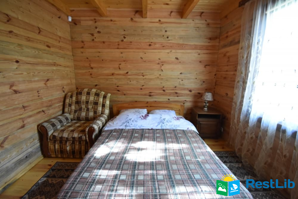Кількість номерів - 4 (Котедж У Юлії) Санвузол спільний на 2 кімнати. В номері: двоспальне ліжко, крісло, телевізор, тумбочка. Є варіант з односпальними ліжками.