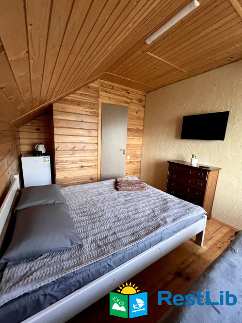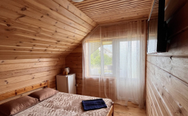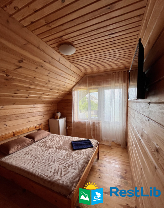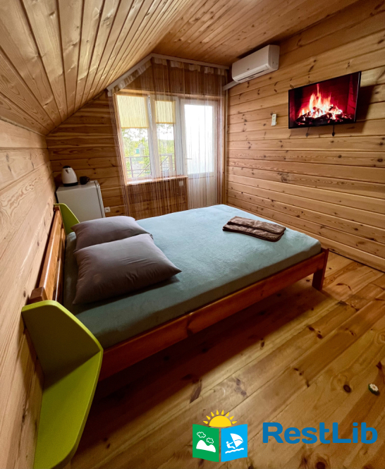 На ІІ поверсі: 3 еко-номери введені в експлуатацію з червня 2021 року (двоспальне ліжко, холодильник, вішалка для одягу, санвузол). Вхід до номерів окремий, з вулиці, через невеличку терасу, на якій столи і крісла.