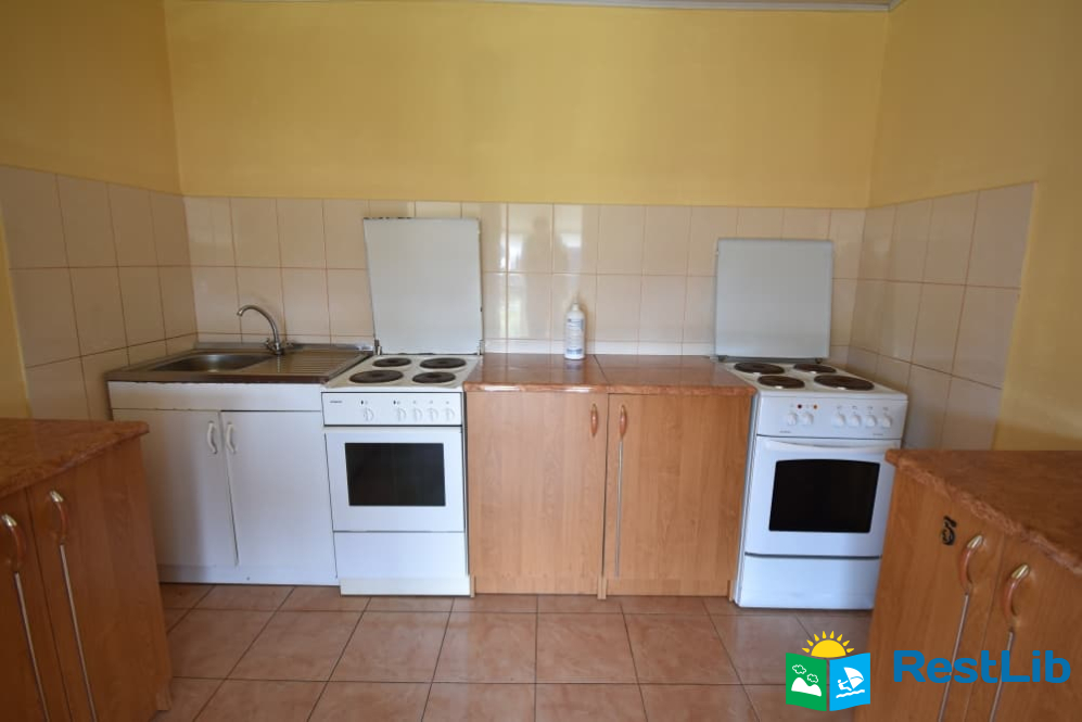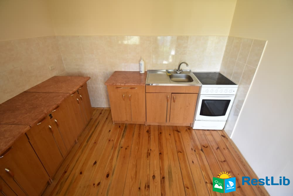 В другому дерев'яному будинку 3 двомісні+1 номери з власними санвузлами, кухня спільна для всього будинку. Входи в номери окремі з вулиці.
