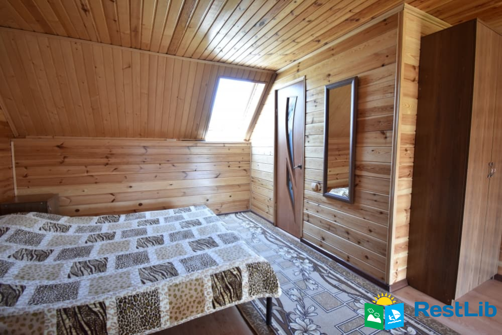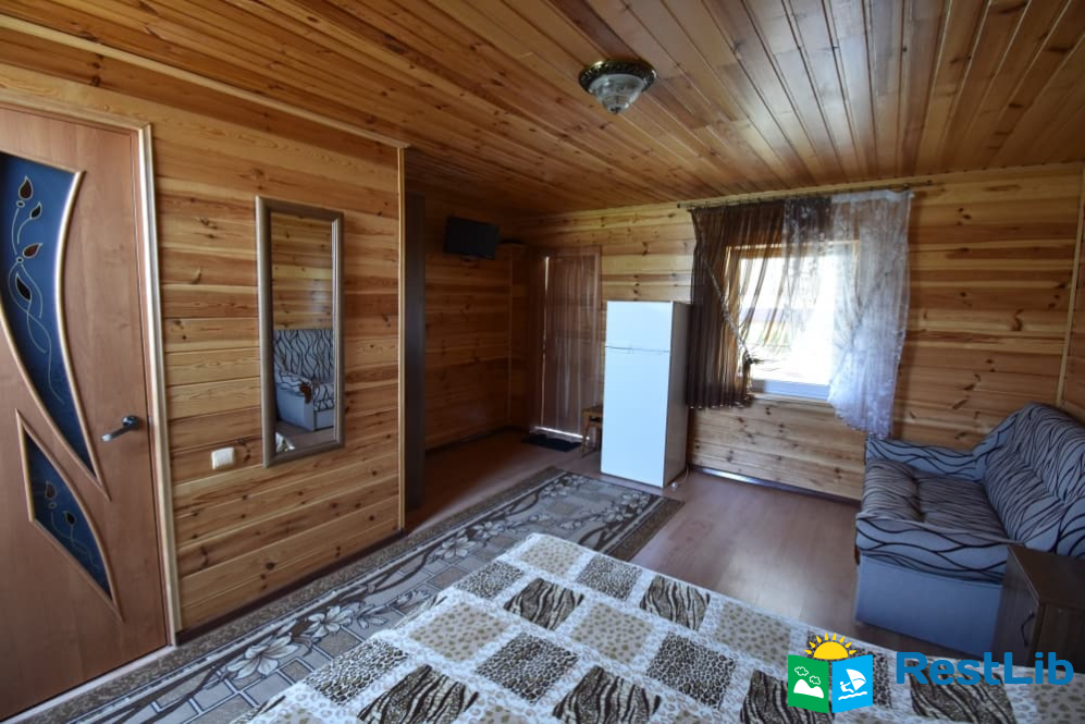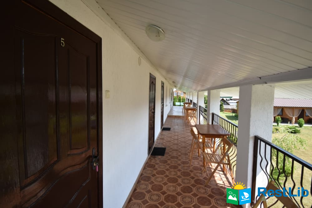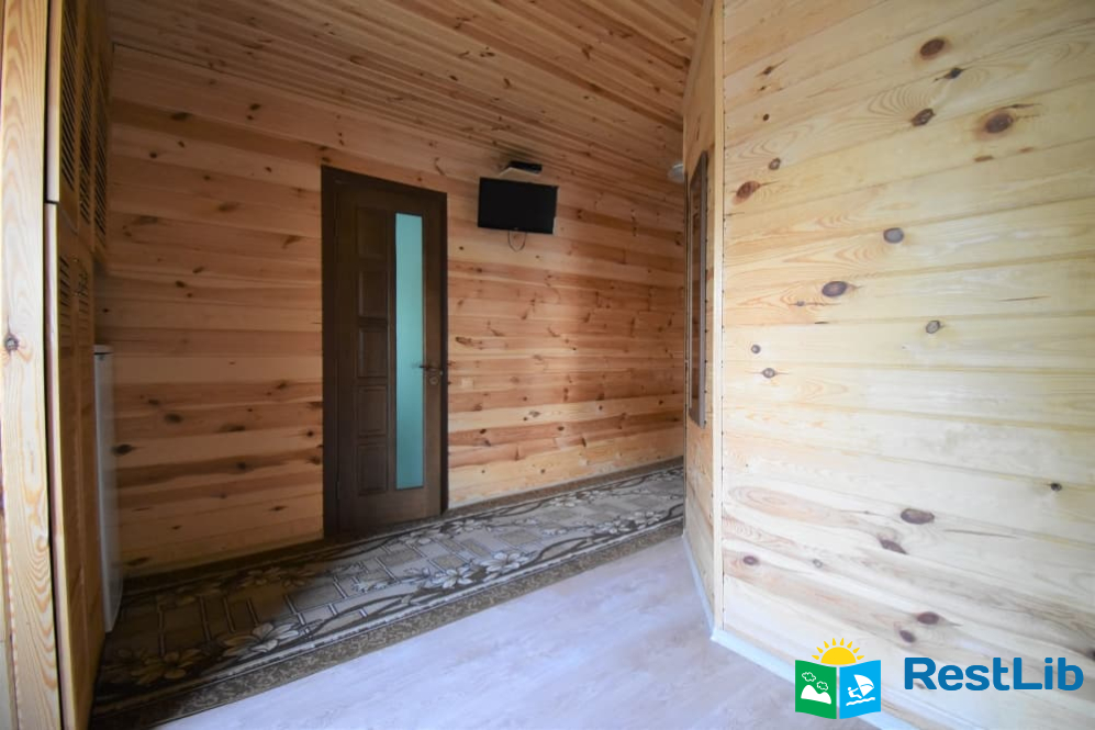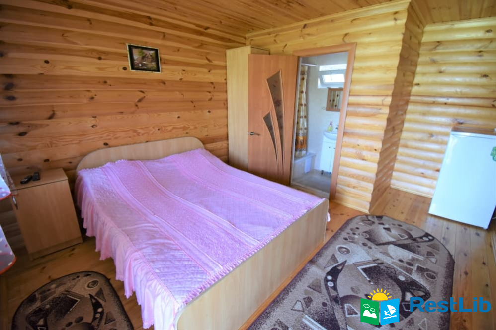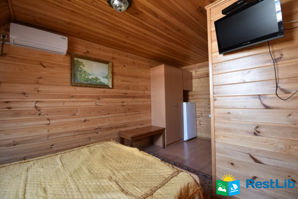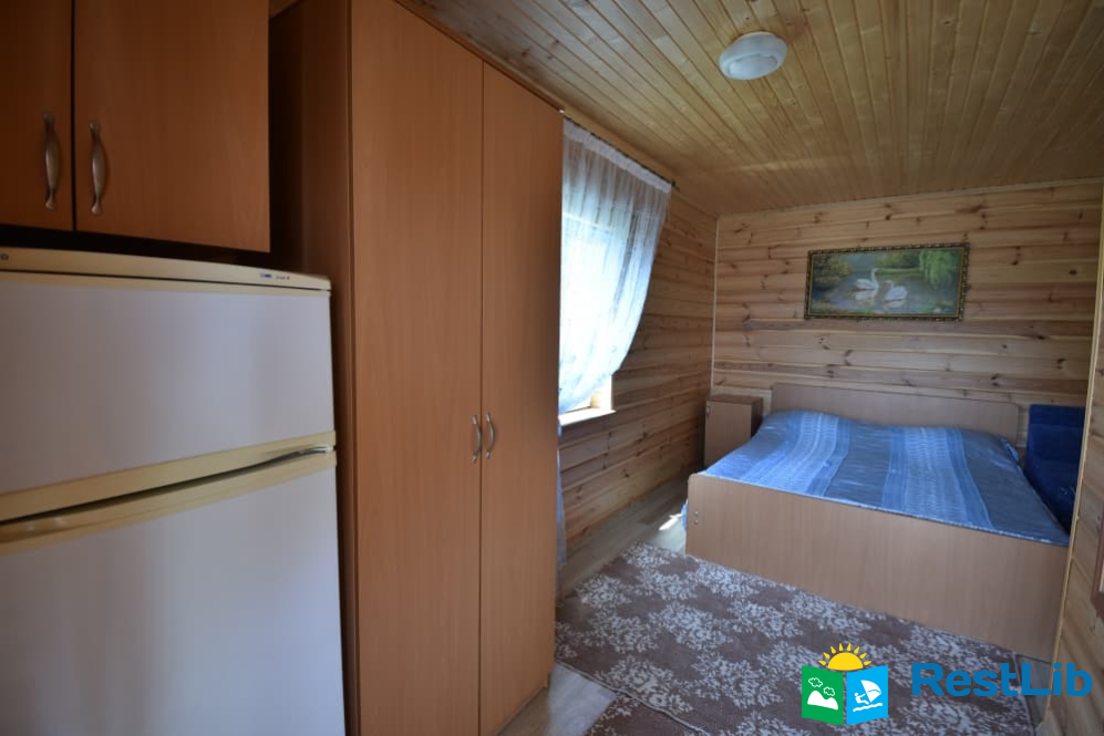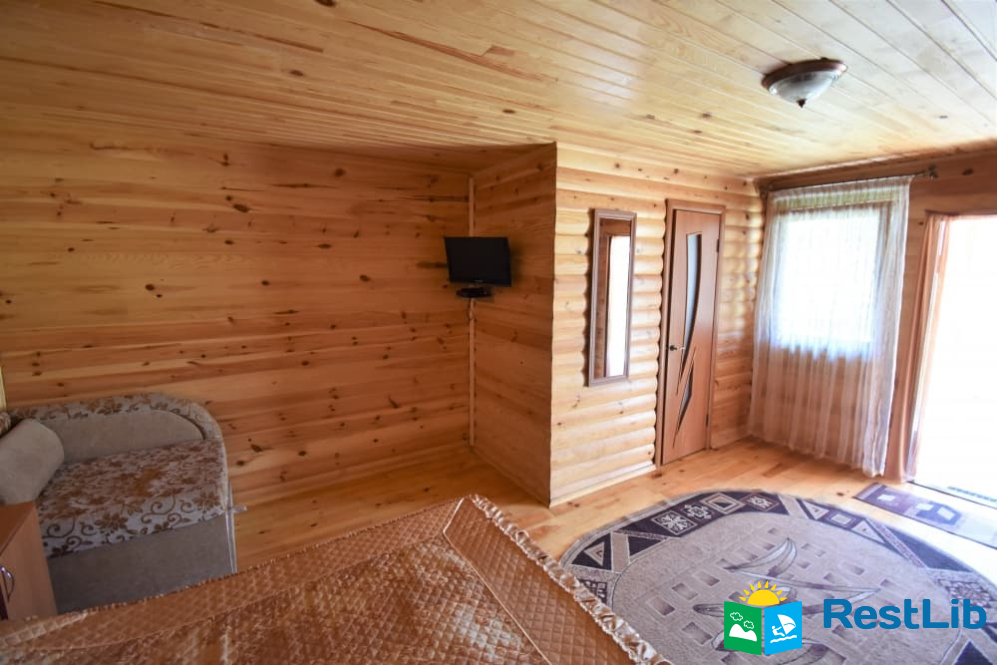 В одному дерев'яному будинку 3 двомісні та 1 чотиримісний номери з власними санвузлами, кухня спільна для всього будинку. Входи в номери окремі, з вулиці.