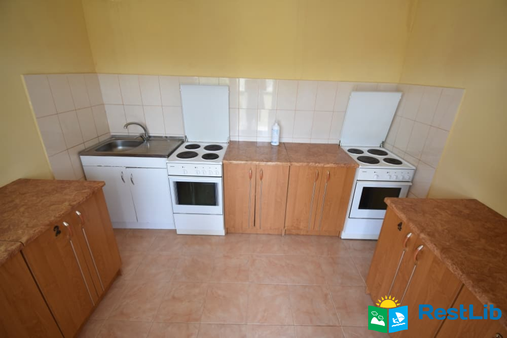 В третьому двоповерховому будинку на першому поверсі 2 двомісних+1, чотиримісний та чотиримісний двокімнатний номери з власними санвузлами. В кожен номер свій вхід з вулиці. Кухня спільна для цих номерів, також на першому поверсі.